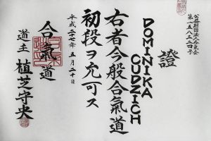 W dniu 02.05.2015 podczas Haru Gasshuku w Dojo Stara Wieś zdałam na 1 dan, egzaminatorem był sensei Roman Hoffmann 6 dan.