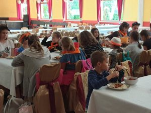 Zwiedzanie ośrodka, rozpakowywanie i kolacja o 19:30 (później niż planowane – wszystko przez późny obiad), na kolację bigos, warzywa, wędlina, ser, dżem i inne różności bufetu szwedzkiego.