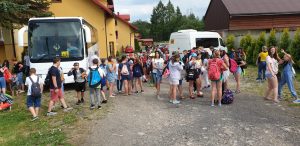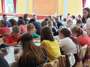 Obiadek (ogórkowa, spaghetti), po obiadku zakwaterowanie (chłopaki pierwsze piętro, dziewczyny drugie – jest git).
