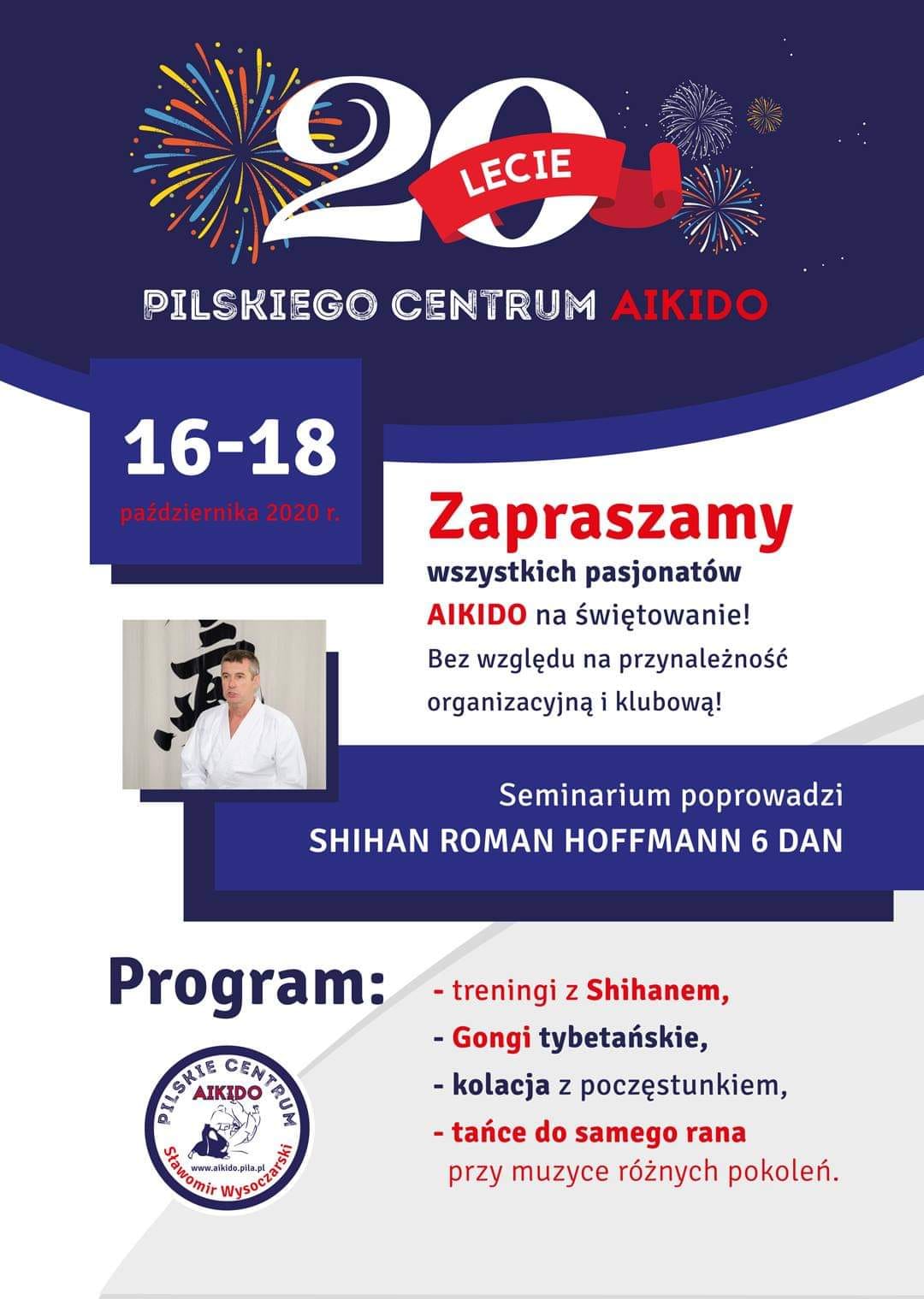 W dniach 16 – 18 października 2020 odbyły się obchody 20 Lecia pilskiego Centrum Aikido pod kierownictwem Sławomira Wysoczarskiego. Przećwiczone zostało kilka technik – jak to na stażu. Niektórym szło lepiej, niektórym gorzej. To co się działo można obejrzeć na fotkach poniżej.