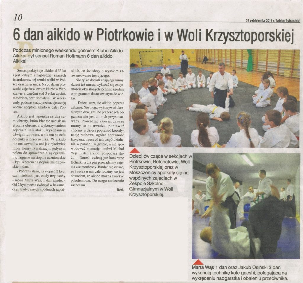 * Po stażu z sensei Romanem Hoffmannem 6 dan (26-28.10.2012) ukazał się artykuł opisujący naszą imprezę: