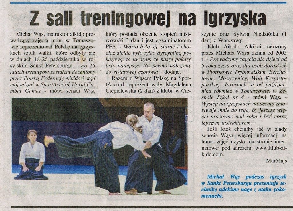 * Tomaszowski Informator Tygodniowy o naszym klubie oraz o naszym instruktorze, który reprezentował Polskę podczas SportAccord Combat Games w St, Petersburgu w Rosji.