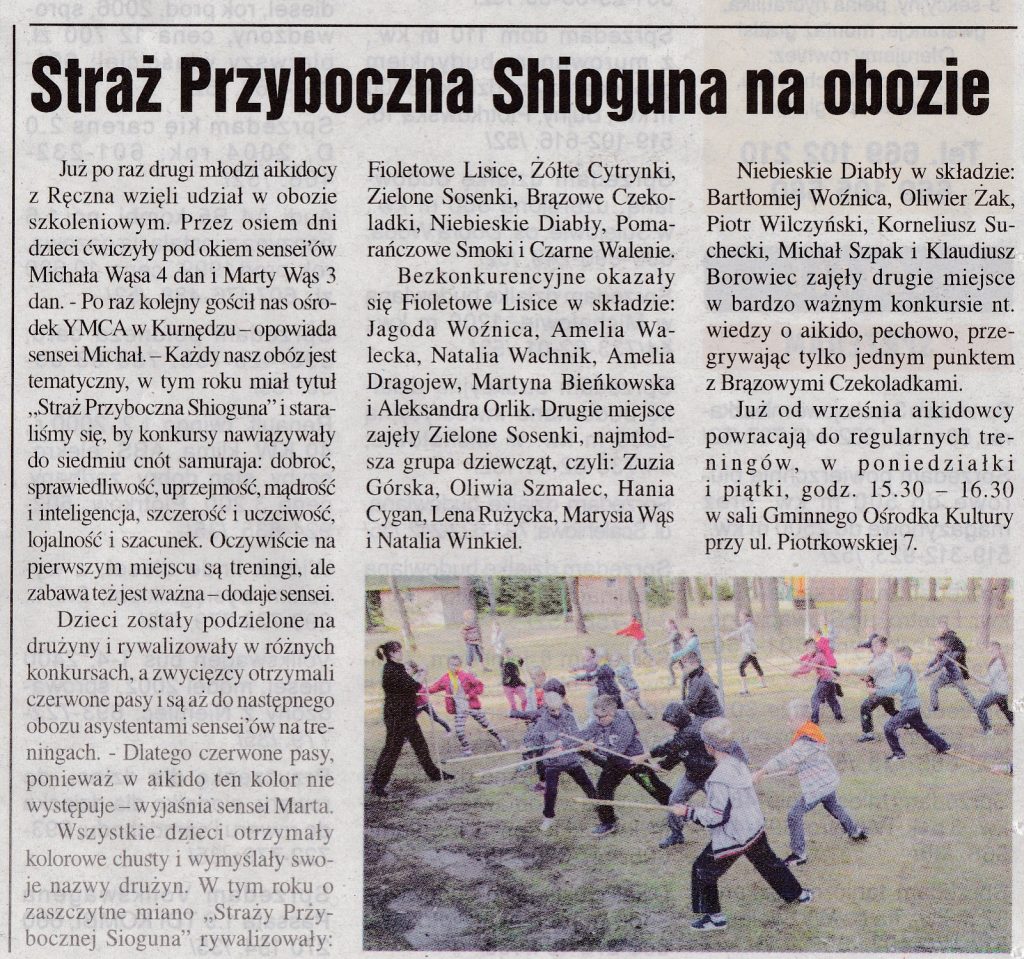 * Napisali o naszym obozie – Letnia Szkoła Aikido dla dzieci – Kurnędz 2015 „Straż przyboczna Sioguna”