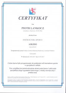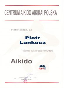 Piotr Lankocz 3 dan – fukushidoin CAA Polska, instruktor w dojo Piotrków Trybunalski