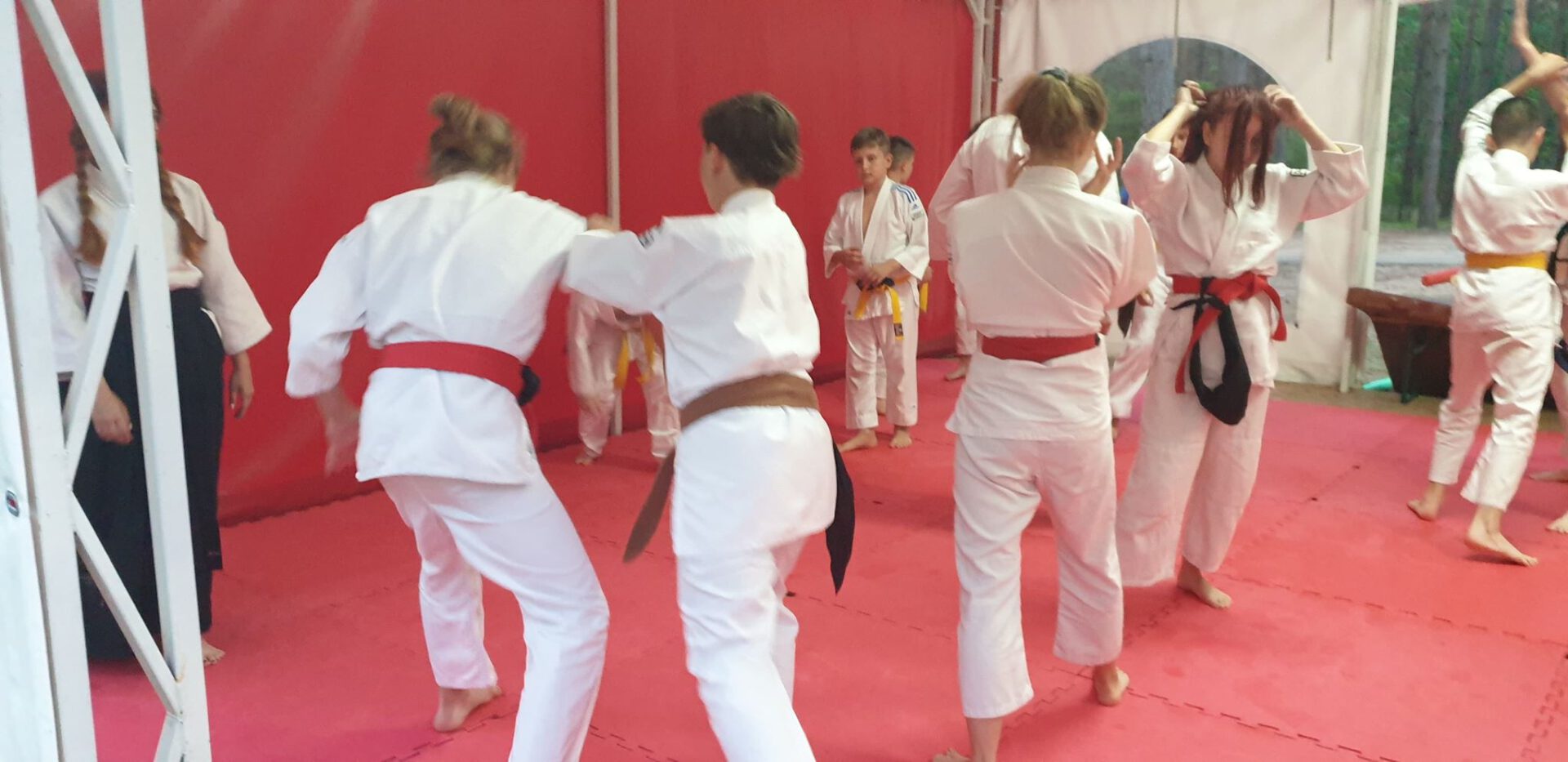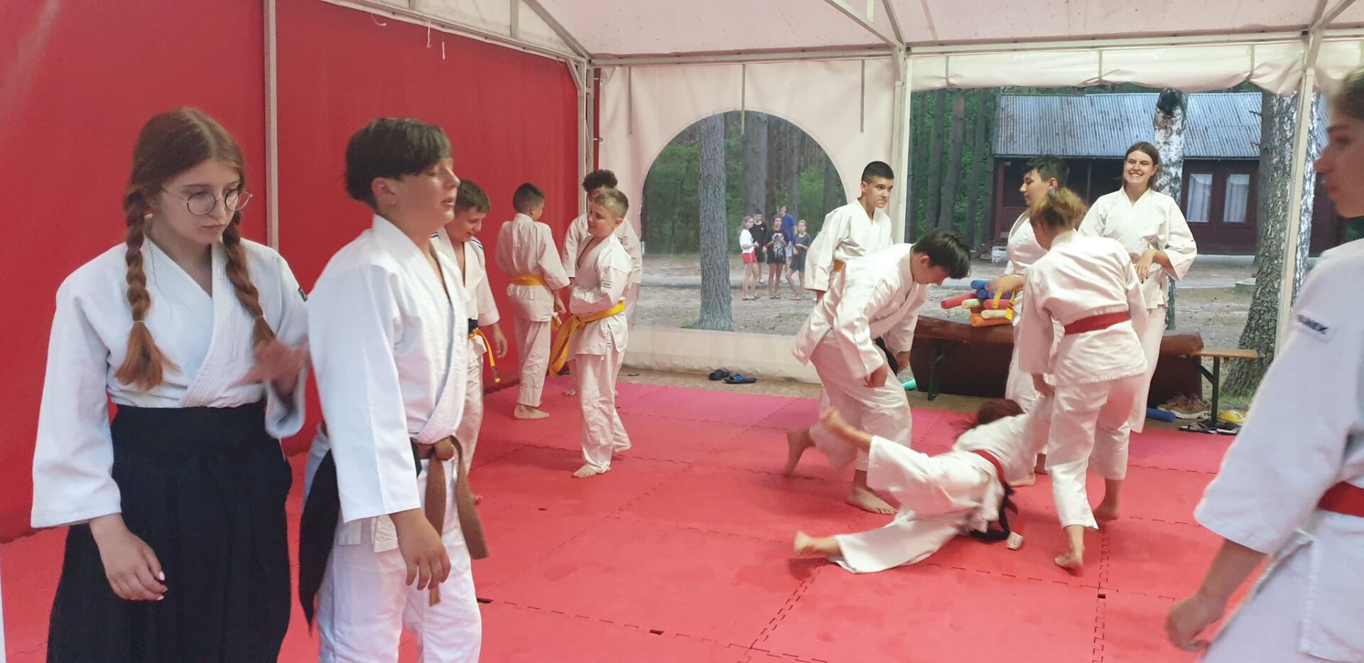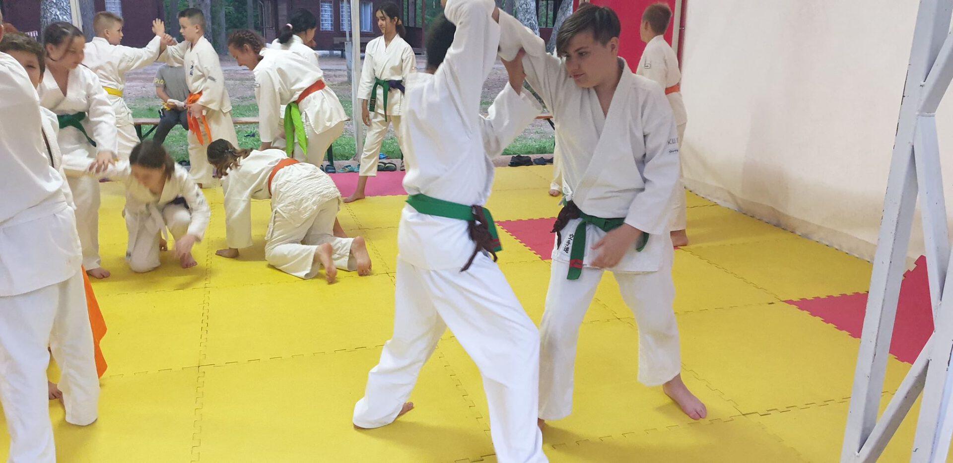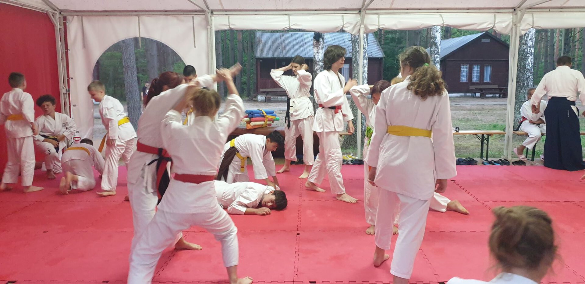 Po obiedzie szybka akcja lokowania w domkach oraz przygotowanie sali treningowej. Rozkładanie maty, odkażanie, mycie i inne przy tej okazji występujący zabiegi, jak choćby wieszanie gaku, rozstawianie rollup’ów i wieszanie banerów.