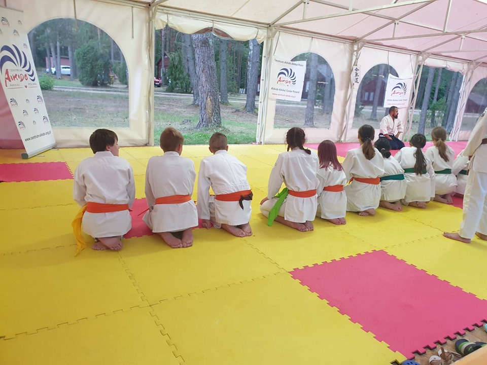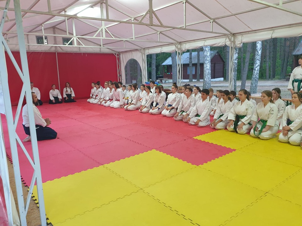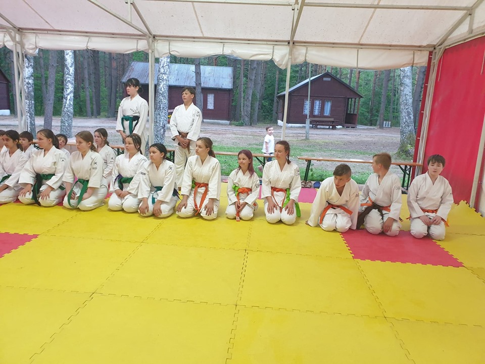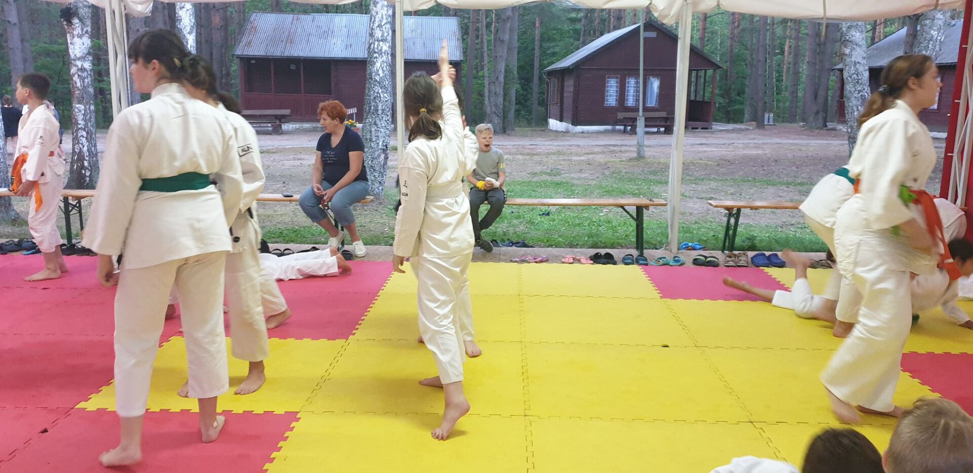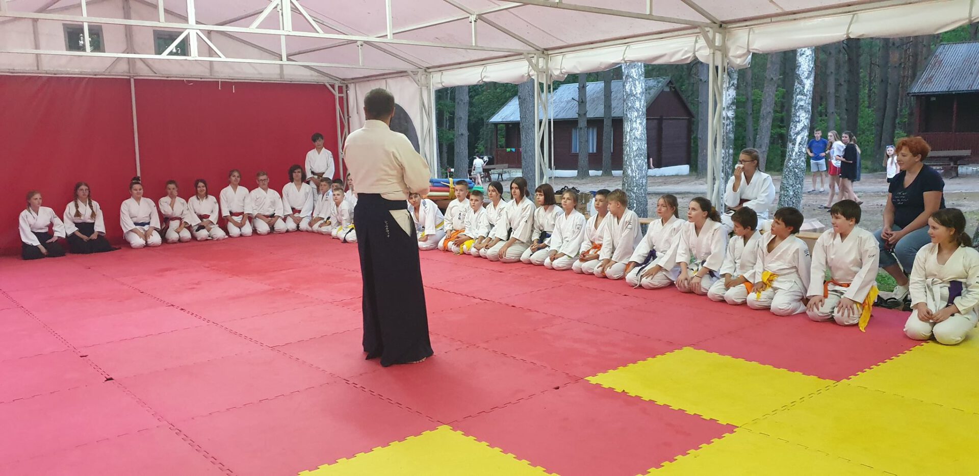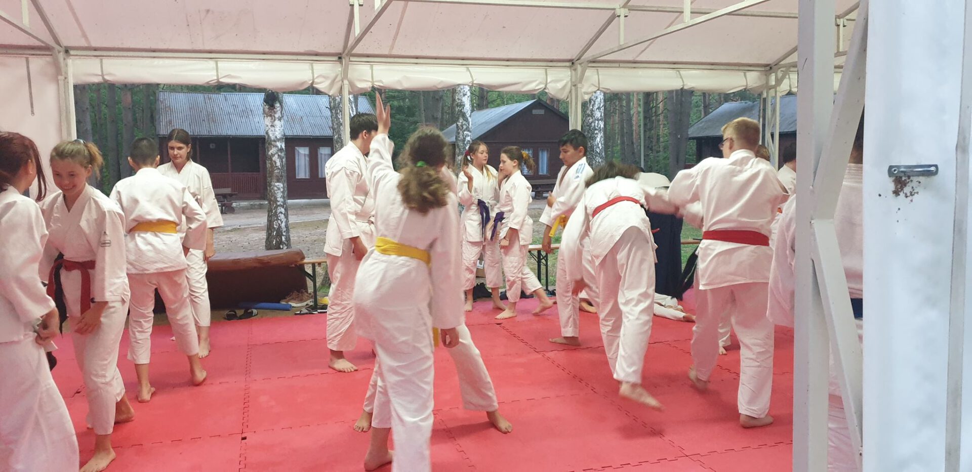 Po obiedzie szybka akcja lokowania w domkach oraz przygotowanie sali treningowej. Rozkładanie maty, odkażanie, mycie i inne przy tej okazji występujący zabiegi, jak choćby wieszanie gaku, rozstawianie rollup’ów i wieszanie banerów.