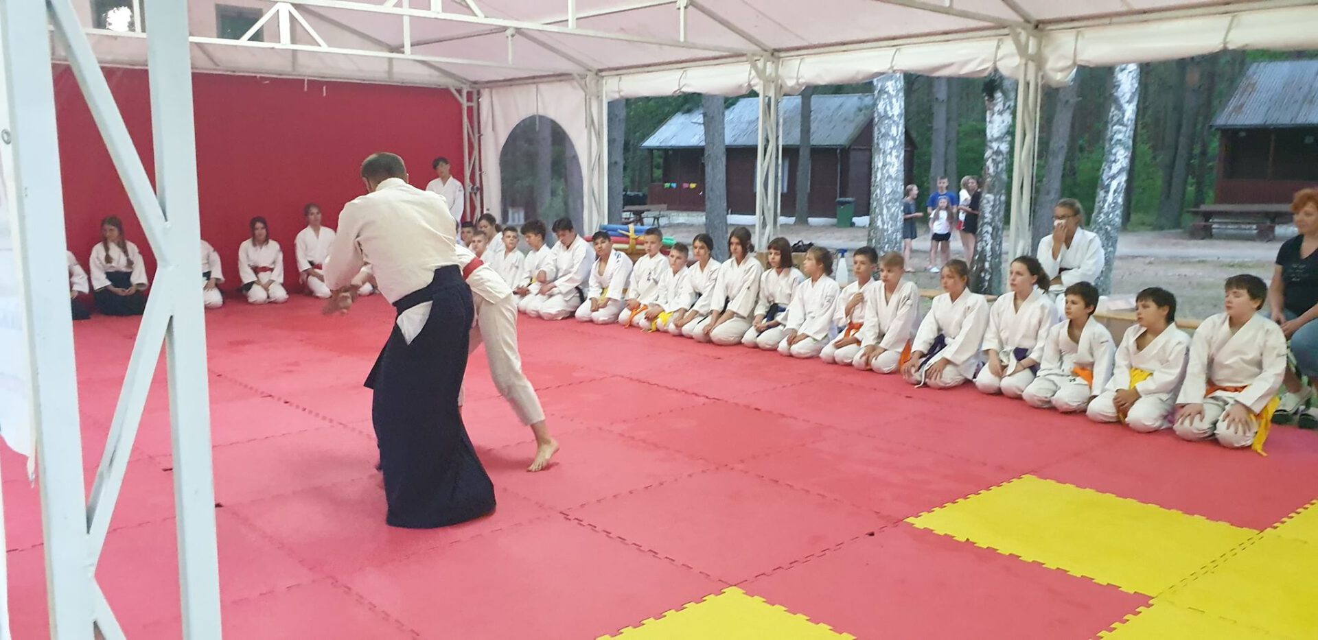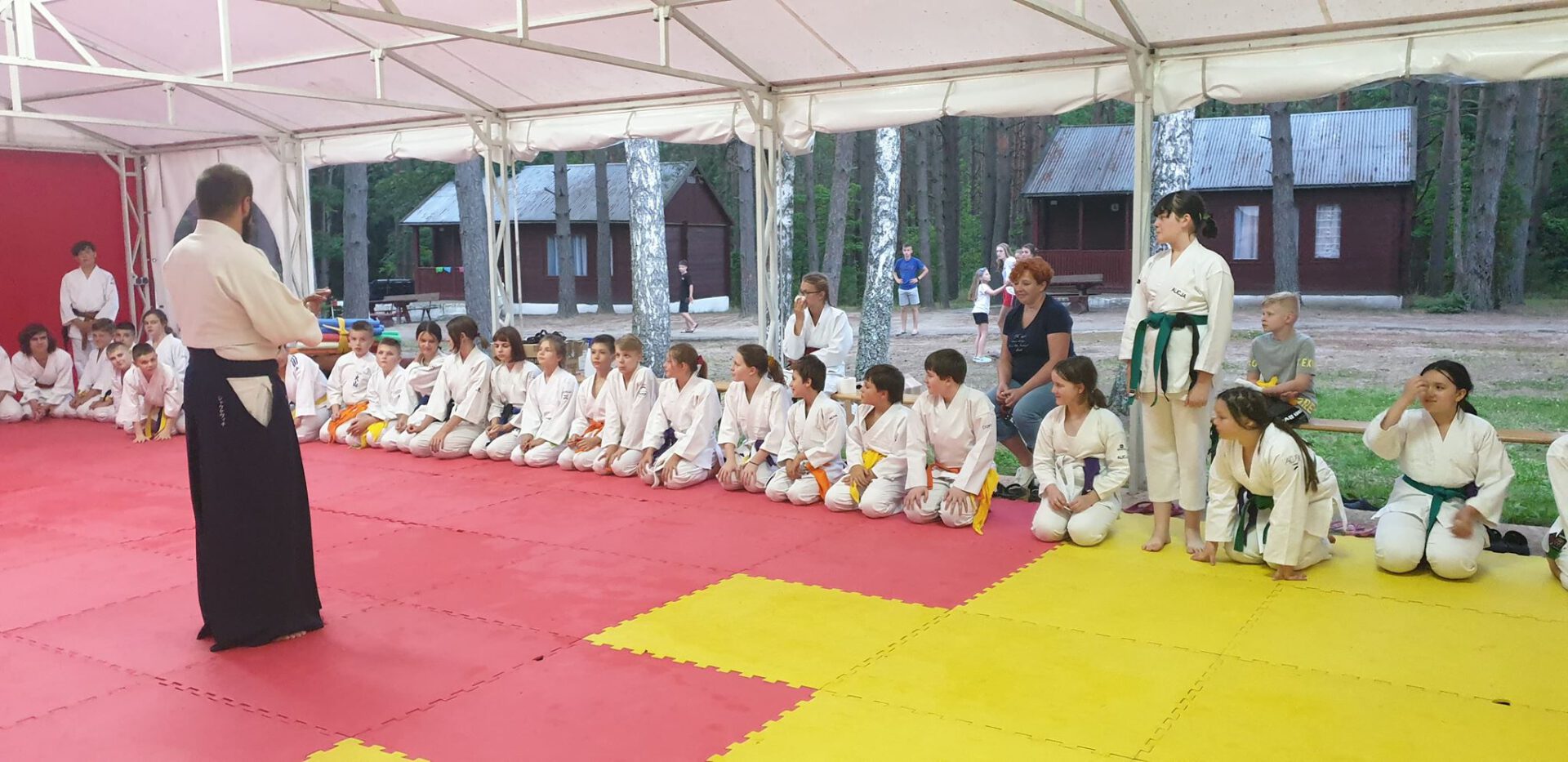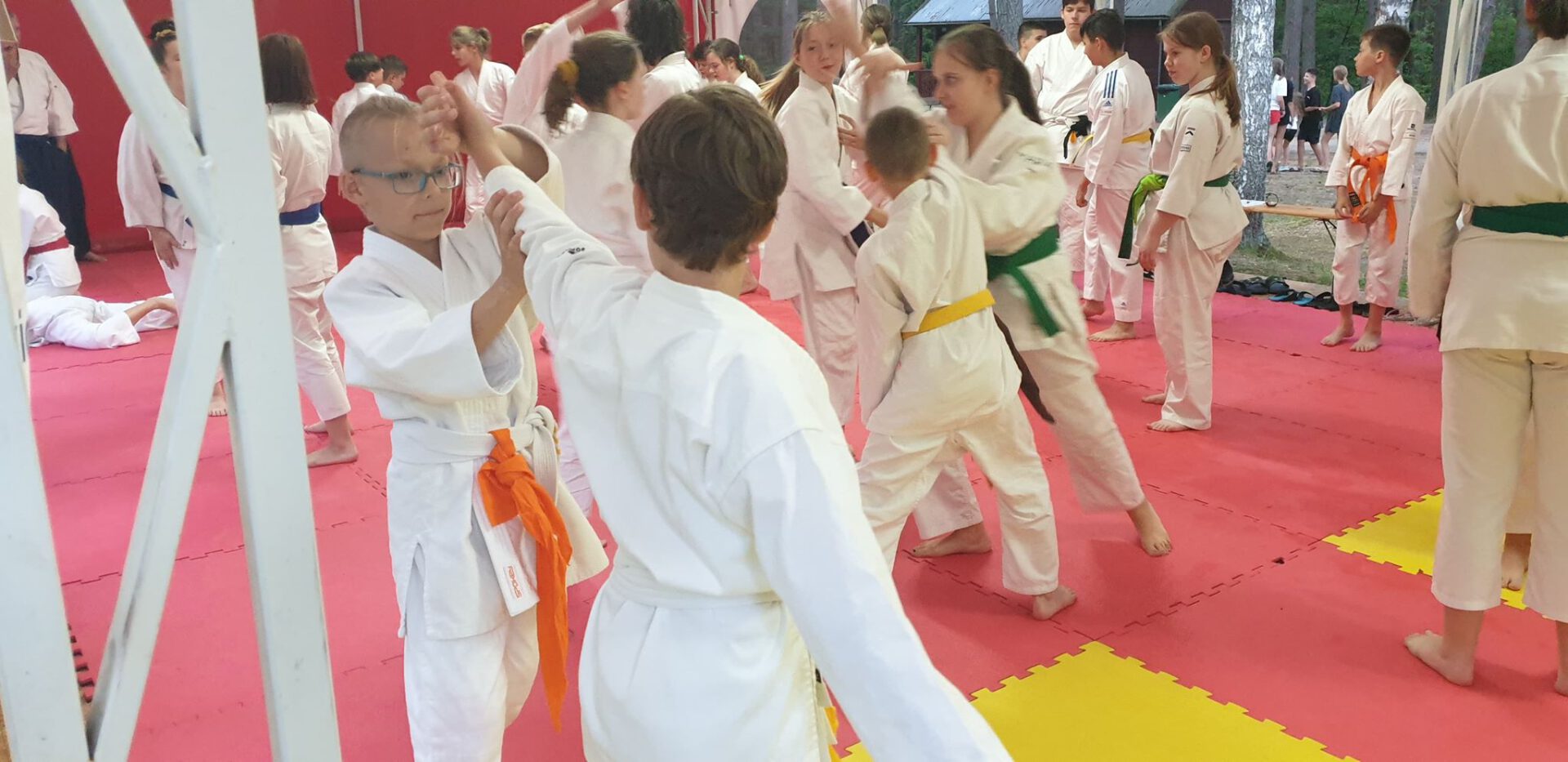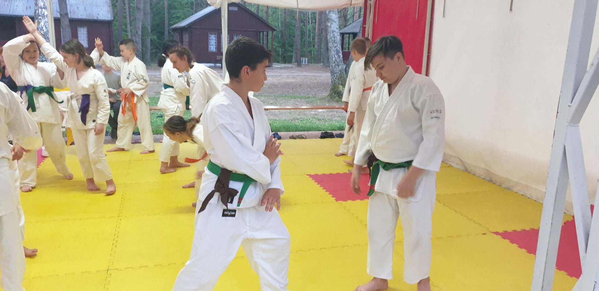 Po obiedzie szybka akcja lokowania w domkach oraz przygotowanie sali treningowej. Rozkładanie maty, odkażanie, mycie i inne przy tej okazji występujący zabiegi, jak choćby wieszanie gaku, rozstawianie rollup’ów i wieszanie banerów.