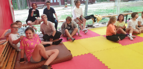 Następnie zakwaterowanie – tu poszło sprawnie, w końcu niektórzy obozowicze to wyjadacze i pomogli młodszym. Rozkładanie maty i ogarnięcie namiotu, który na czas obozu zamienił się w dojo.