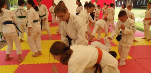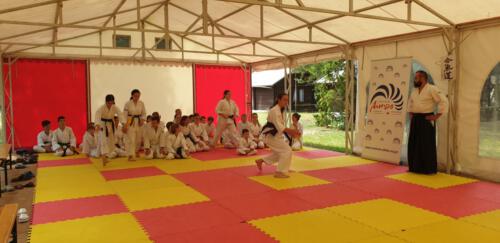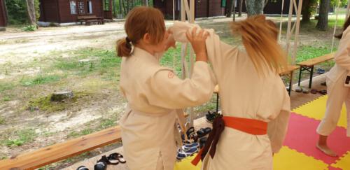 Po śniadaniu rozpoczęło się klasyczne życie obozowe, a mianowicie konkurs czystości, treningi aikido. Dzisiaj treningi prowadził sensei Michał. Pierwszy trening był łączony, czyli wszyscy razem, w końcu to trening otwarcia obozu.