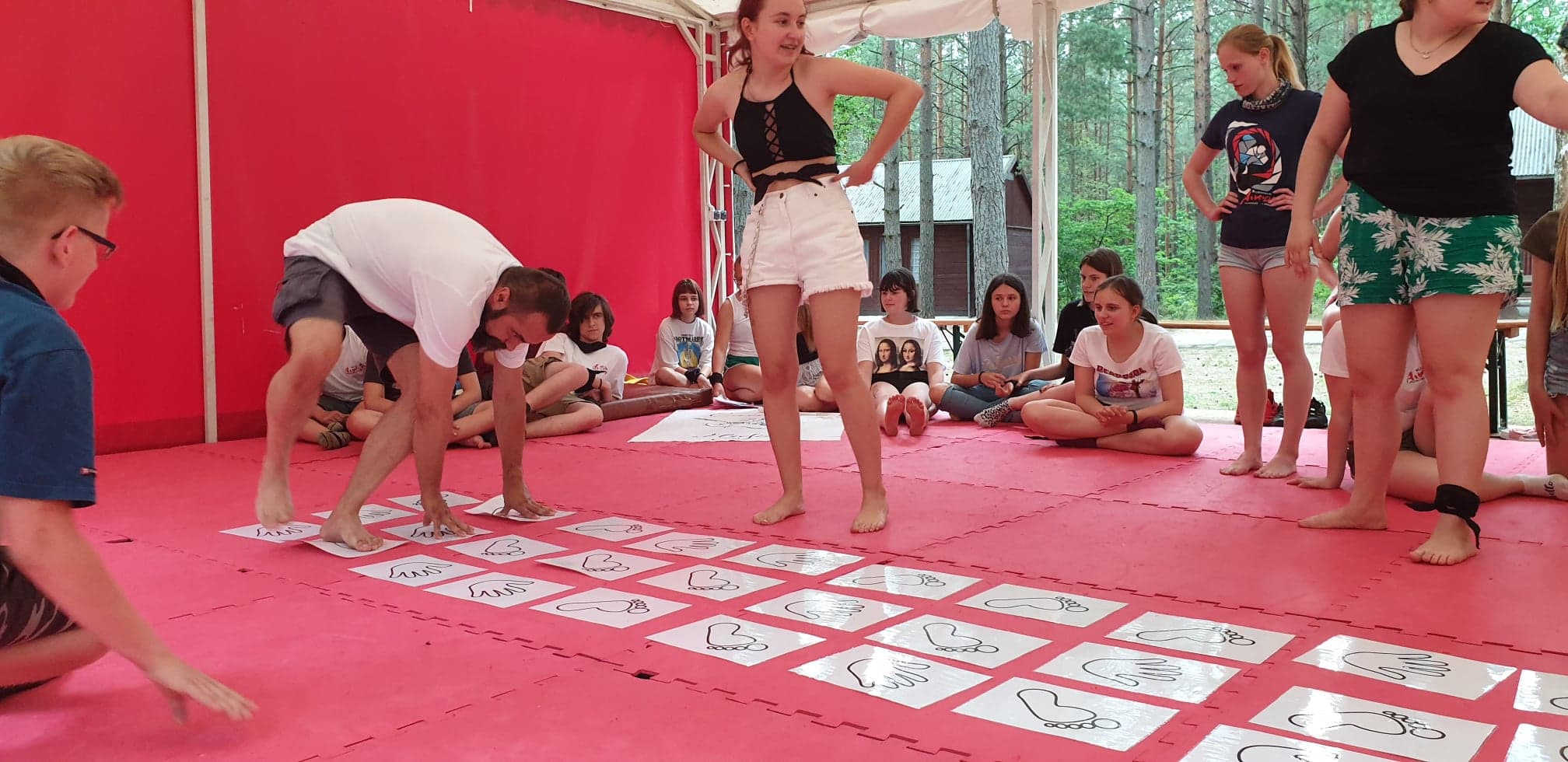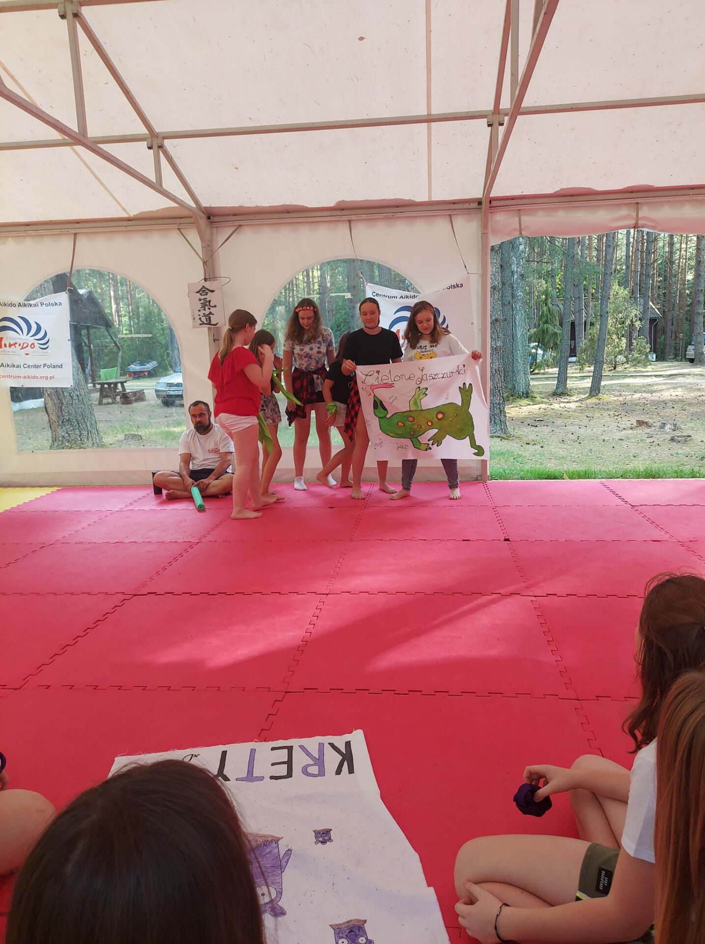 Po kolejnej dawce aiki odbyły się kolejne konkursy – prezentacja sztandarów i hymnów grup oraz gra „twister”