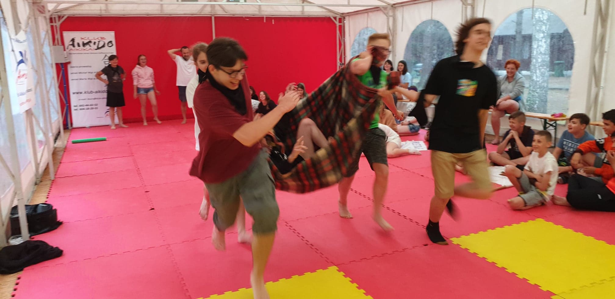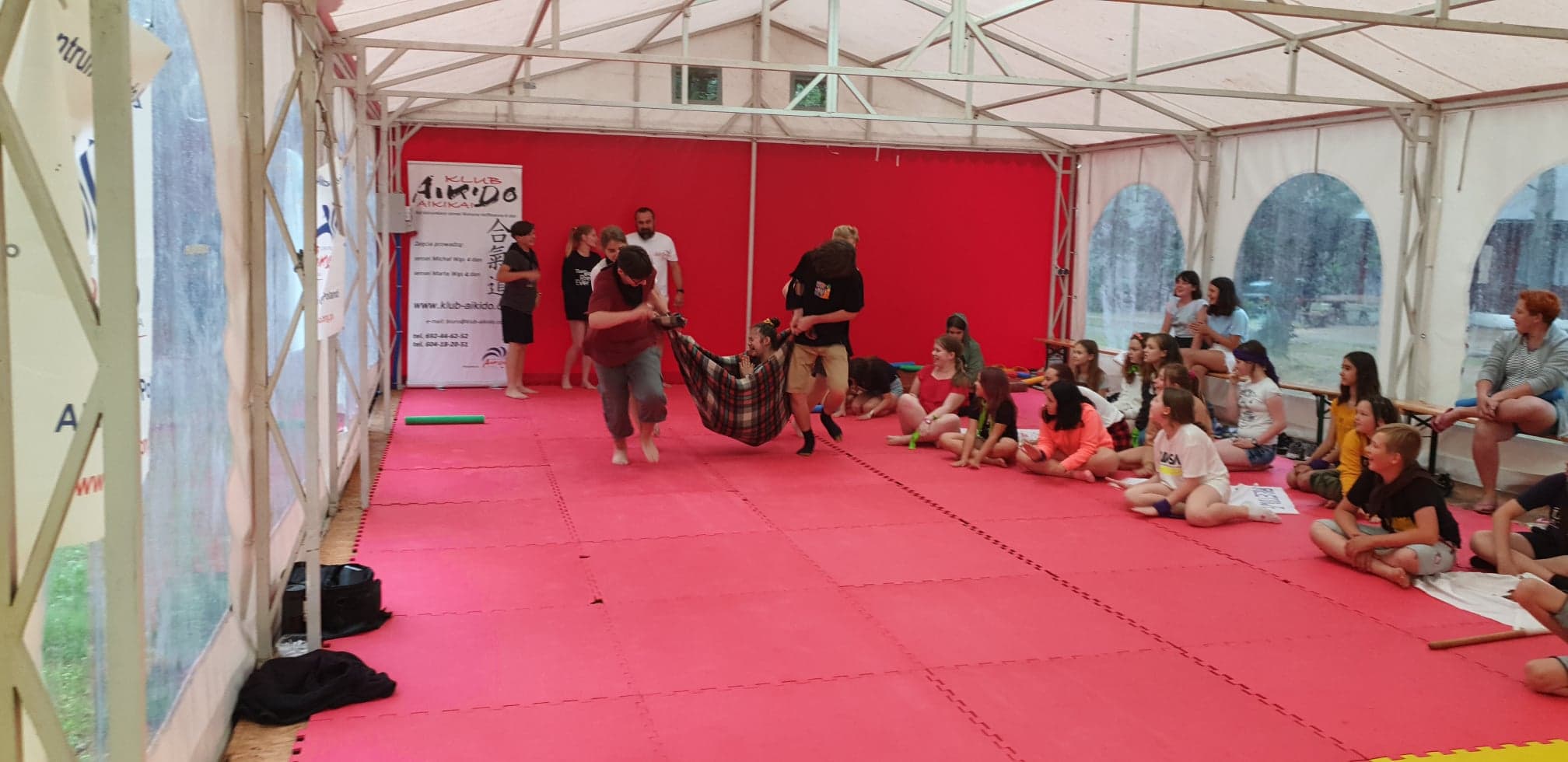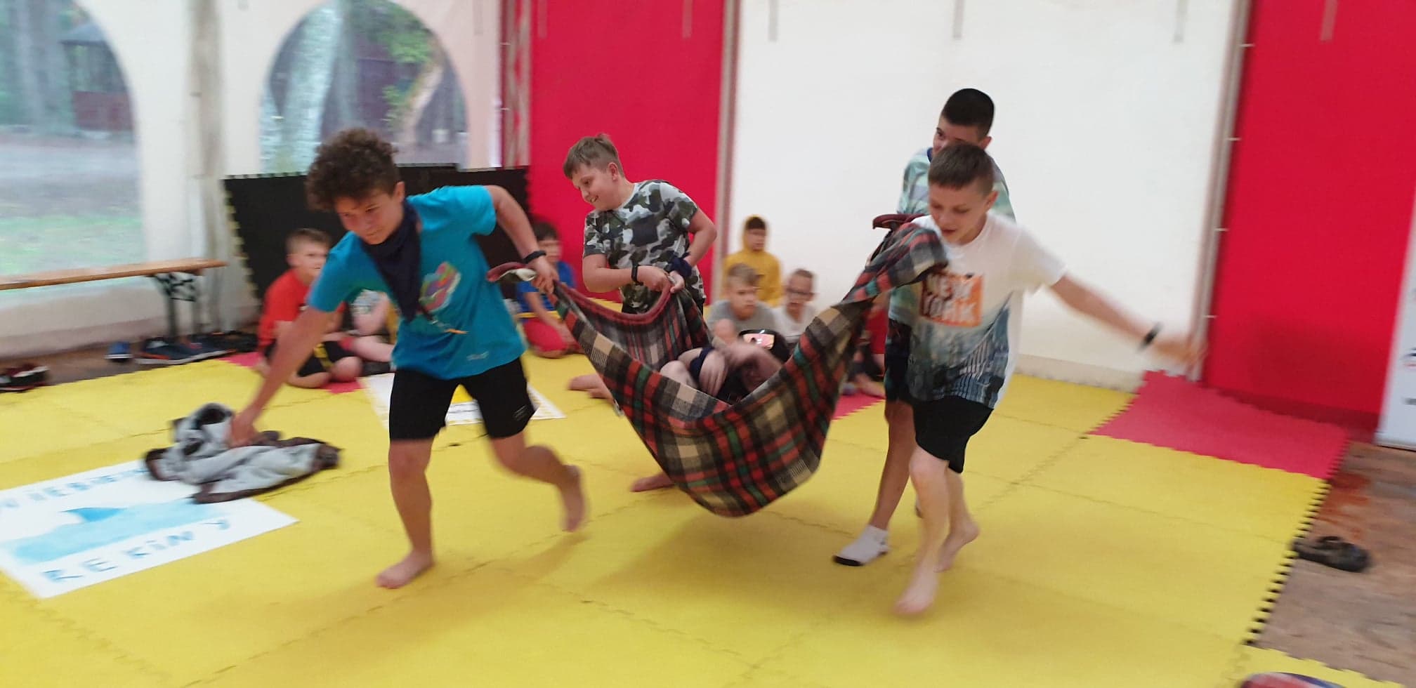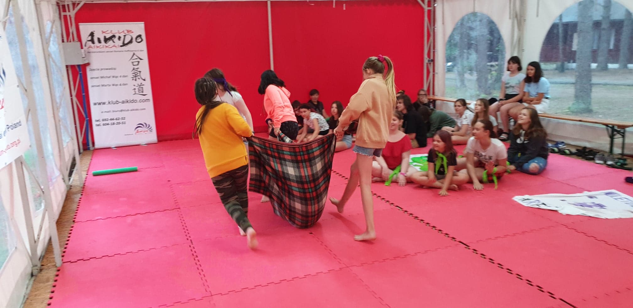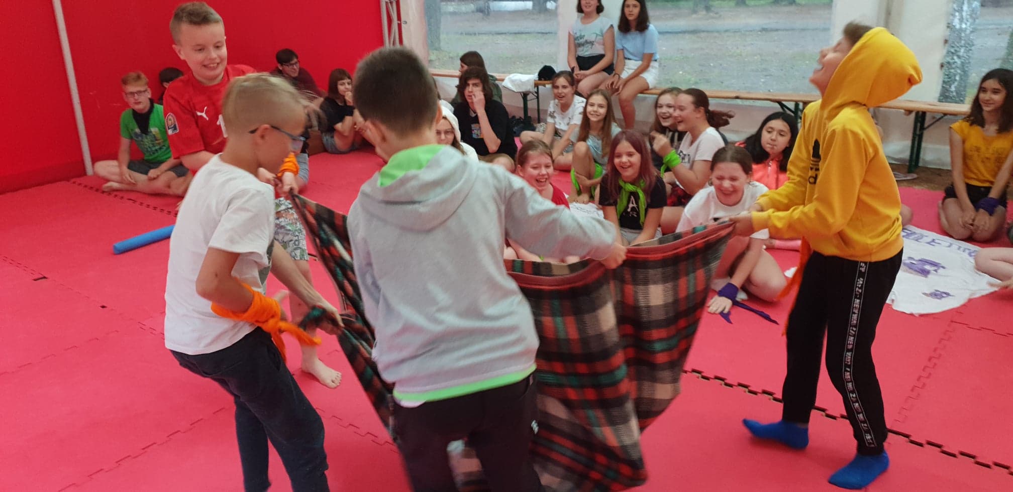 Po treningach pora na konkursy obozowe, czyli czara szczęścia oraz konkurs sprawnościowy – przenoszenie w kocu