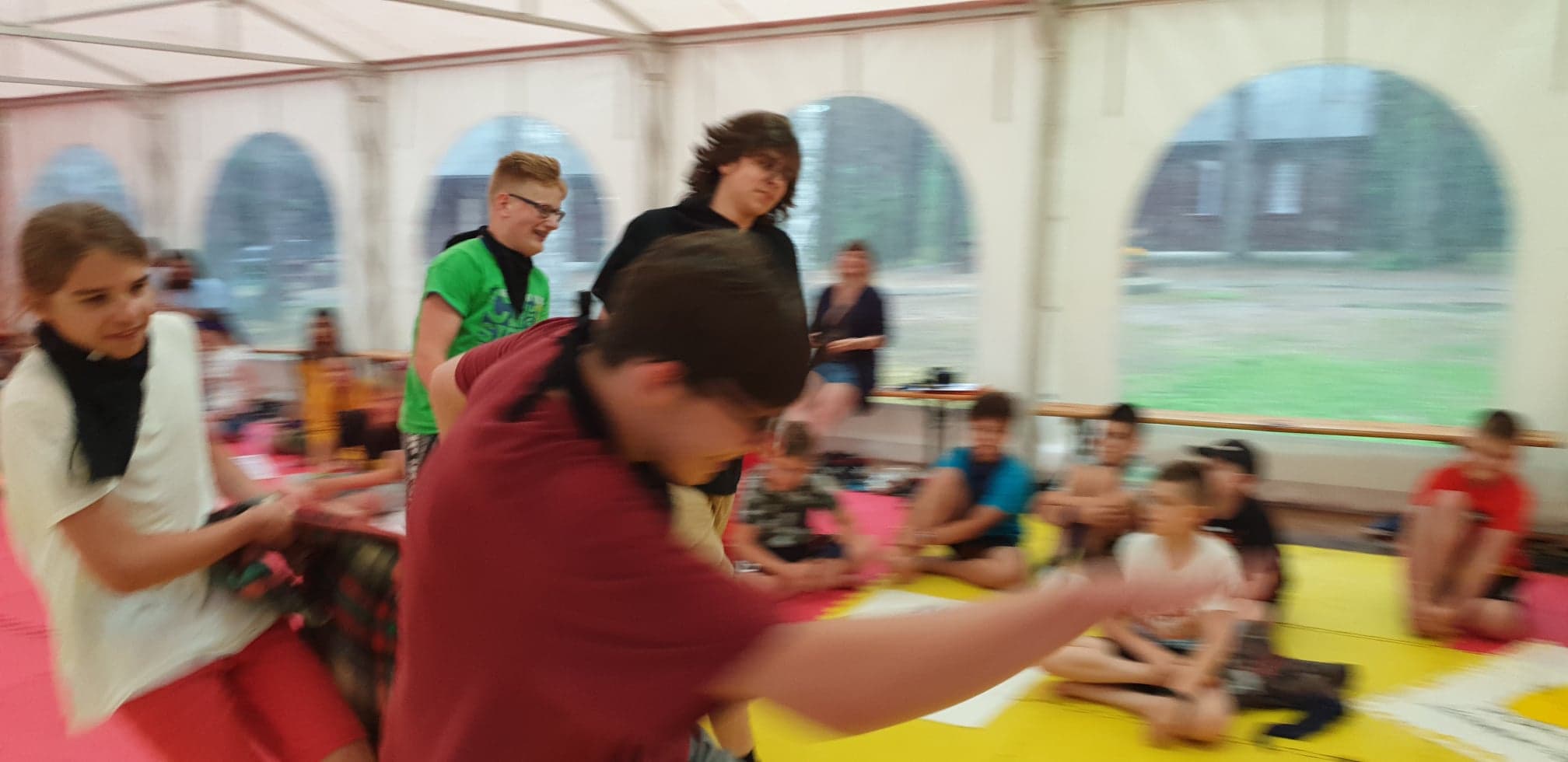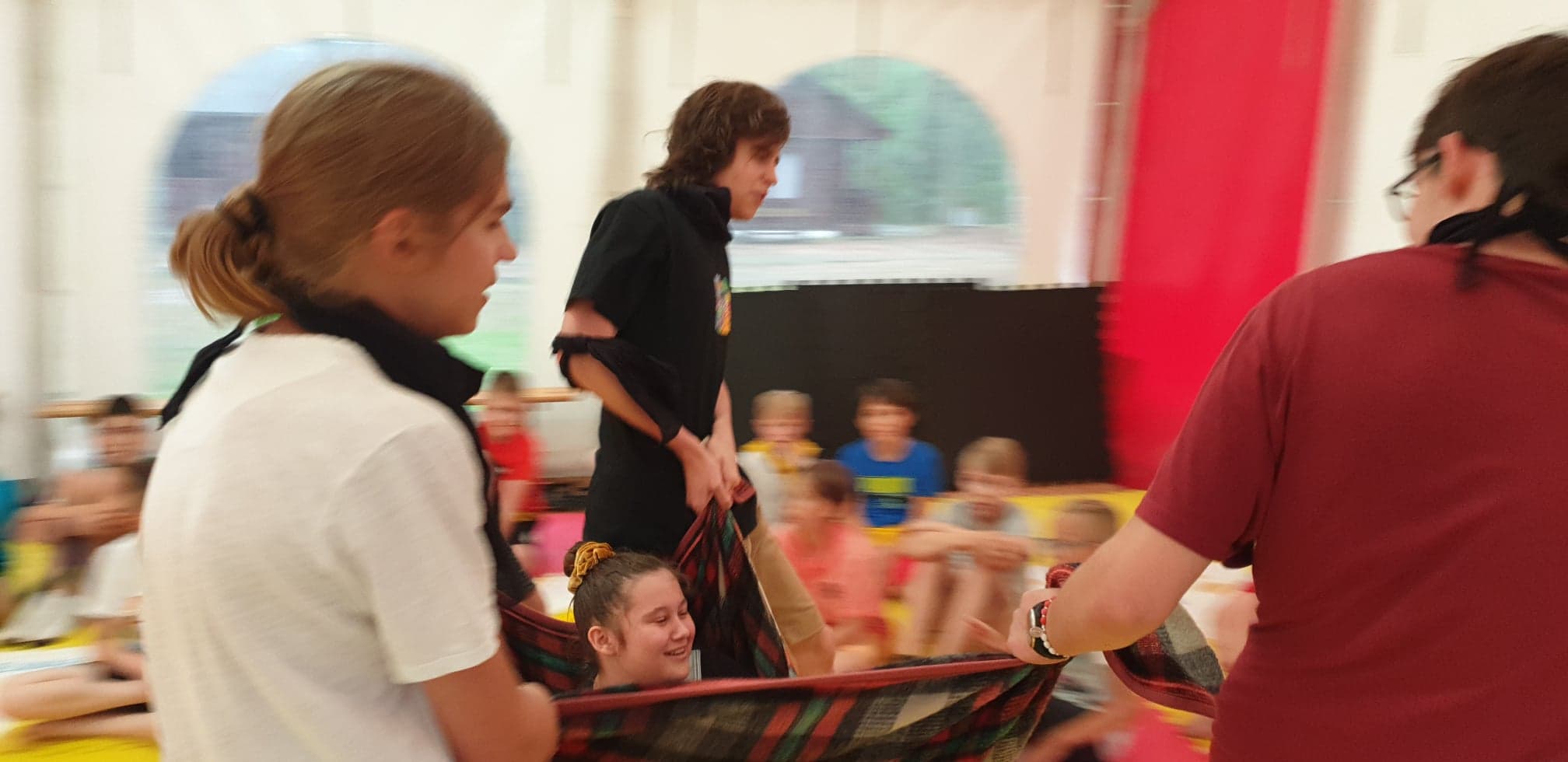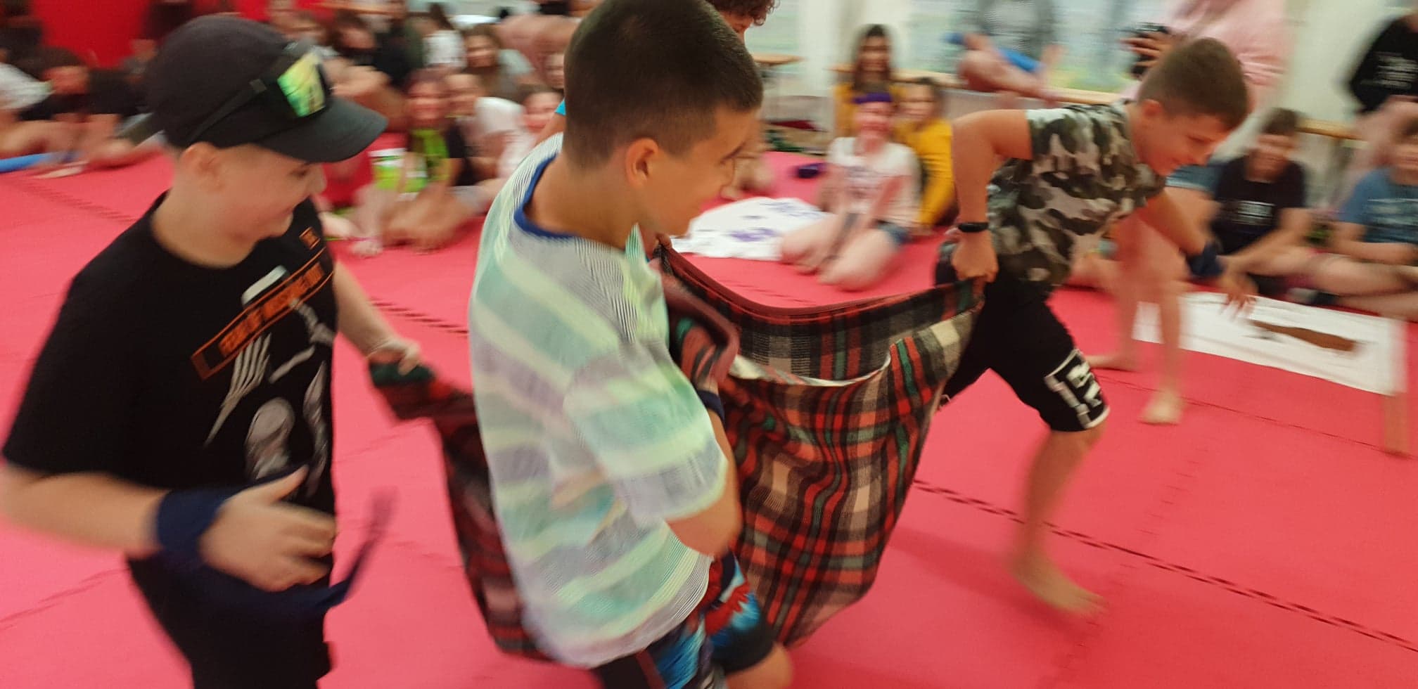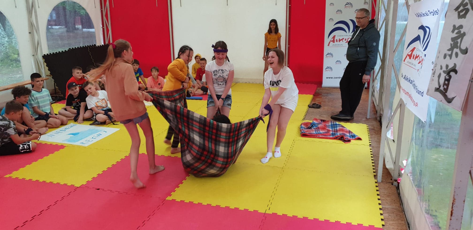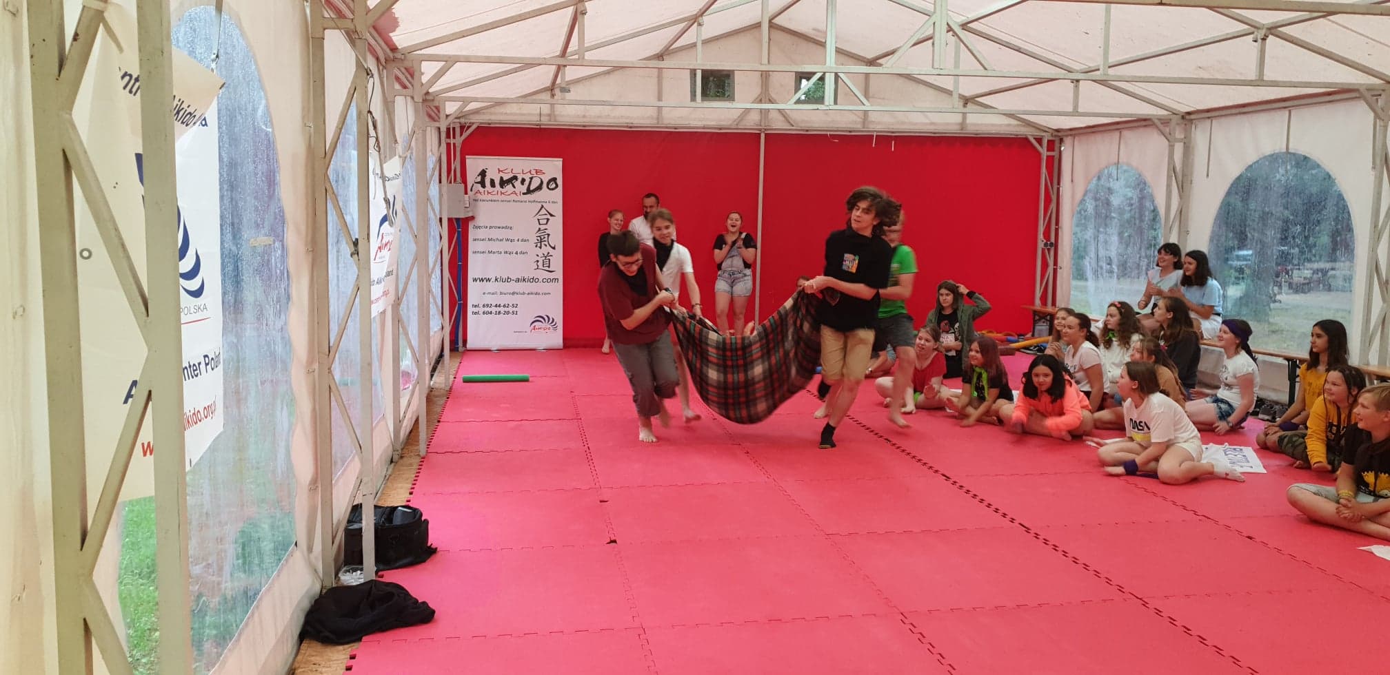 Po treningach pora na konkursy obozowe, czyli czara szczęścia oraz konkurs sprawnościowy – przenoszenie w kocu