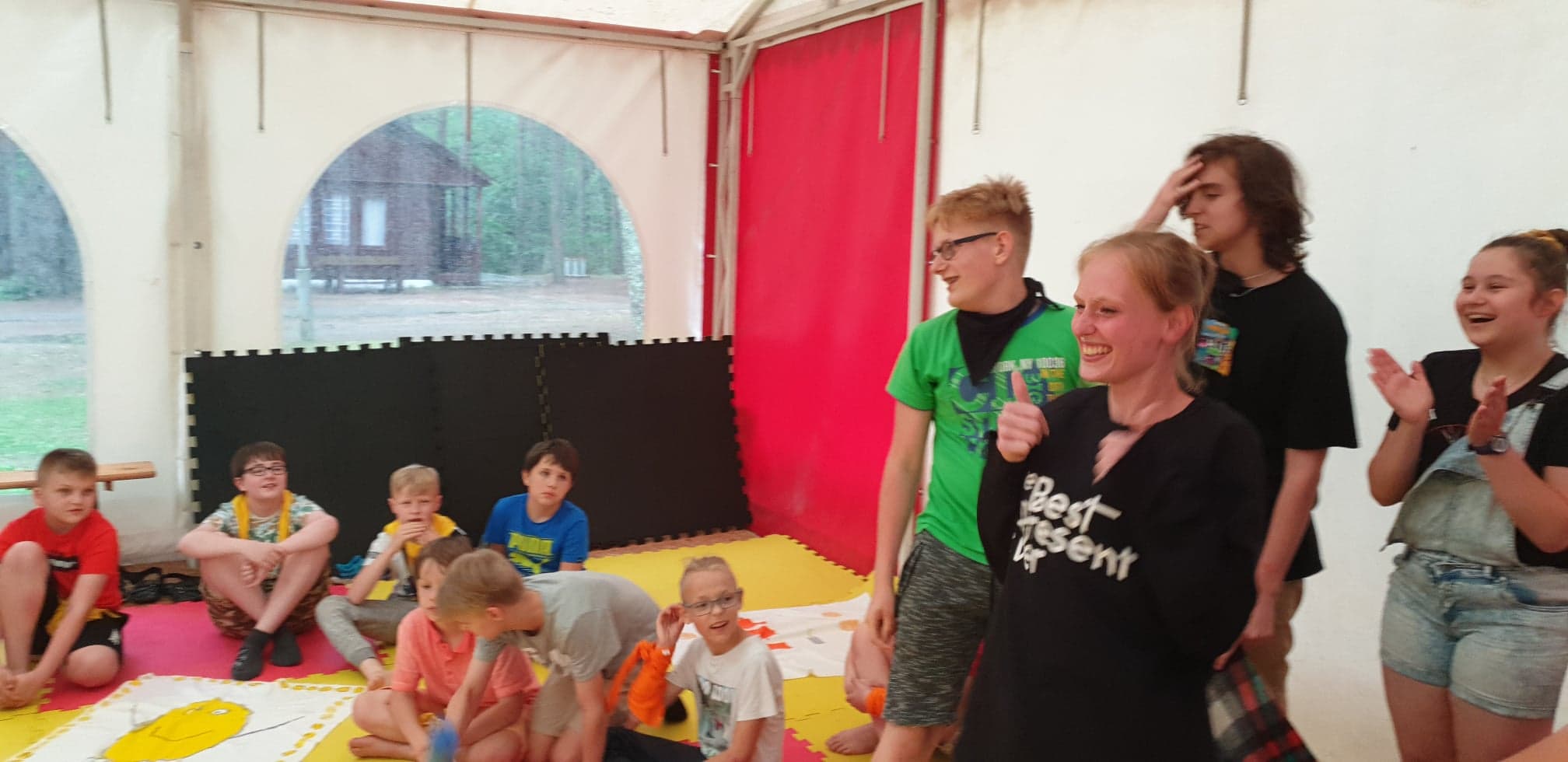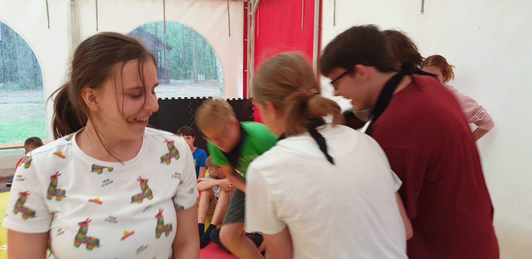Wieczorem (mimo lekkich sympatycznych opadów deszczu) wszystkim dopisywały humory i dużo energii (kurczę, może za dużo jedzą nasi obozowicze – kiedy im się baterie skończą). Po 22 cisza nocna zakończyła dzisiejszy, bardzo miły i intensywny dzień.