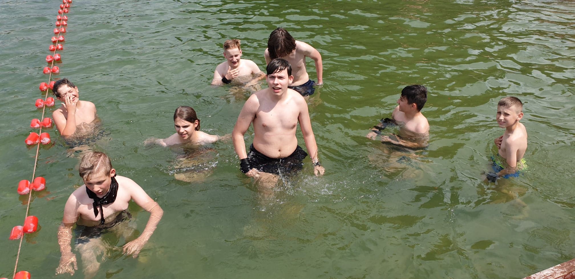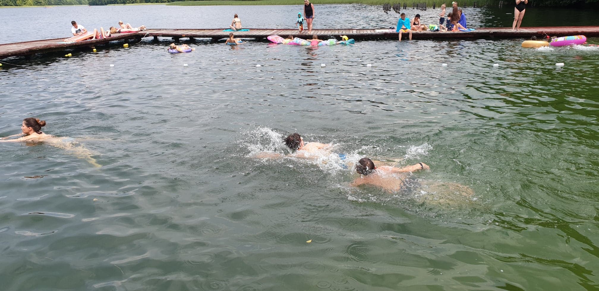 Po treningach udaliśmy się do jeziora Plusznego Wielkiego – bardzo czysta woda przezierność ponad 3m – szok. Zabawa przednia – wszyscy chętni zostali porządnie wykąpani.