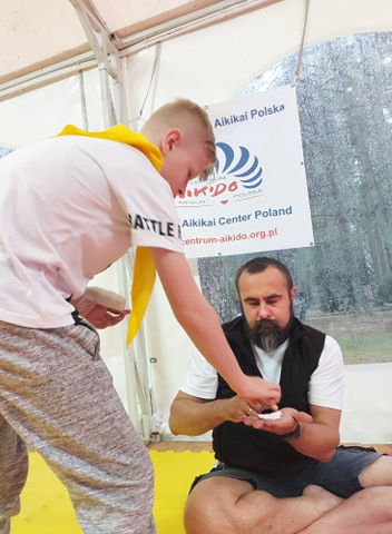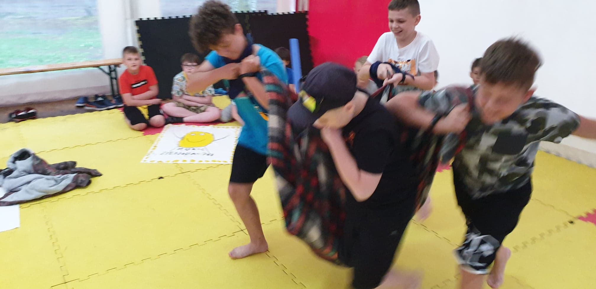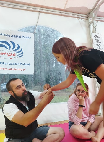 Potem „biegiem” na obiad, po krótkim odpoczynku poobiednim kolejne treningi – dzisiaj zajęcia prowadził sensei Wiktor 1 dan