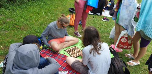 W trakcie gry terenowej grupy zmierzyły się w różnymi zagadkami logicznymi i sprawnościowymi, jak np. celność, znajomość kierunków świata itp. Pierwszą grupą, która dotarła na metę i rozwiązała wszystkie zadania, była grupa żółtych.