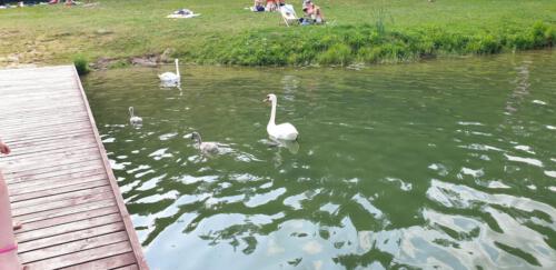 Dzisiejszy dzień obfitował również w inne atrakcje, między innymi spotkanie z łabędzią rodziną, motylem w jednym z domków, przygotowywaniem do sobotnich pokazów czy wyjściem do sklepu oraz dyskoteką na macie.