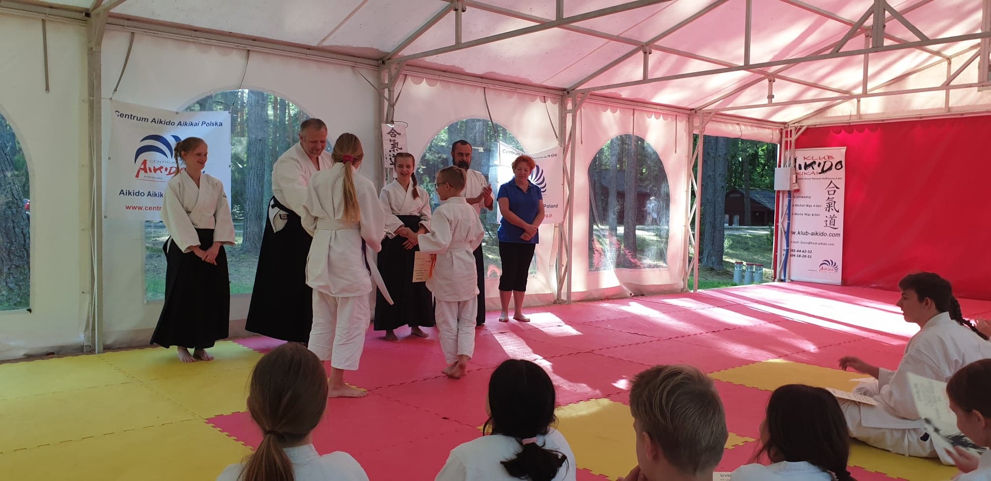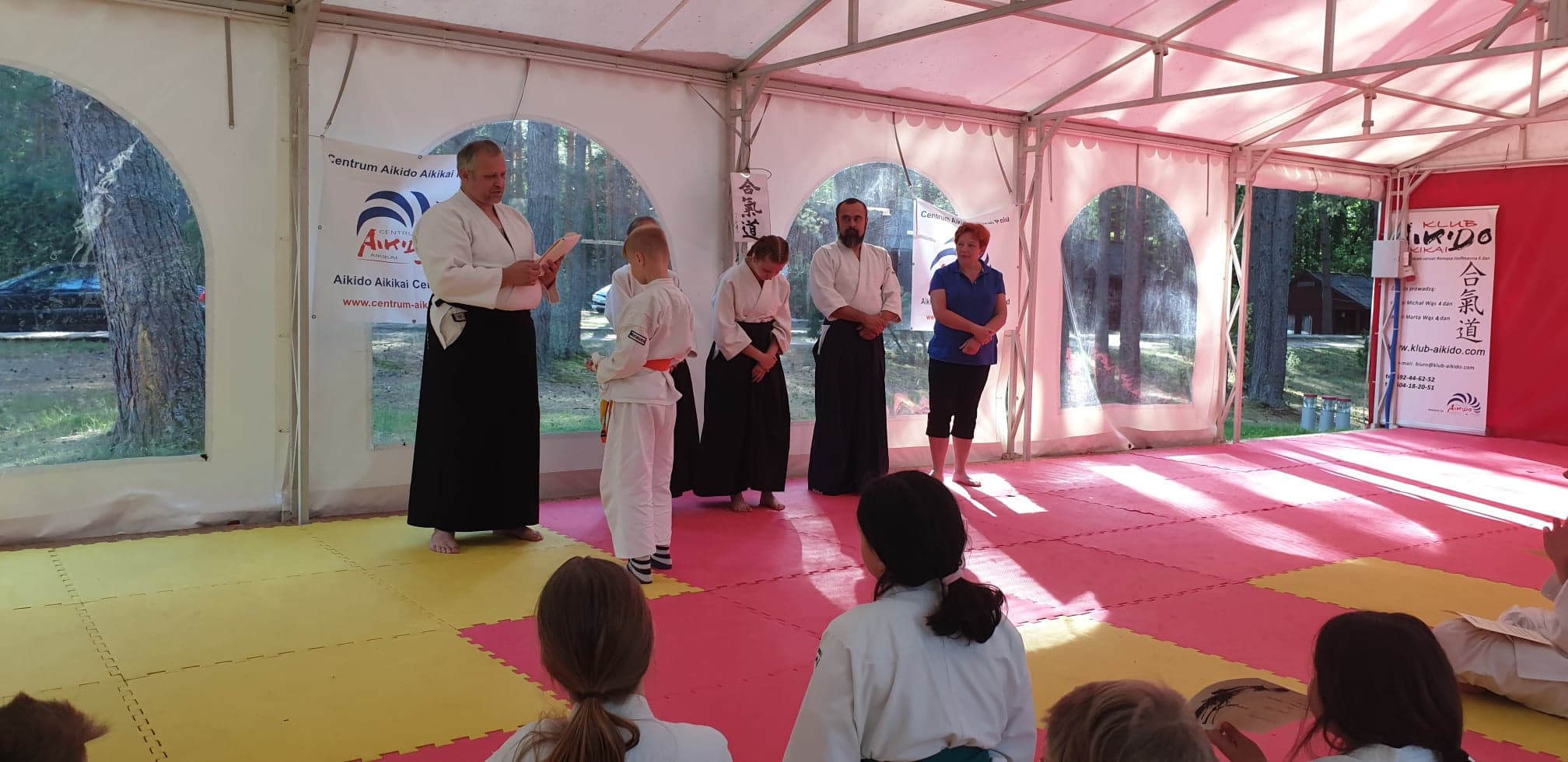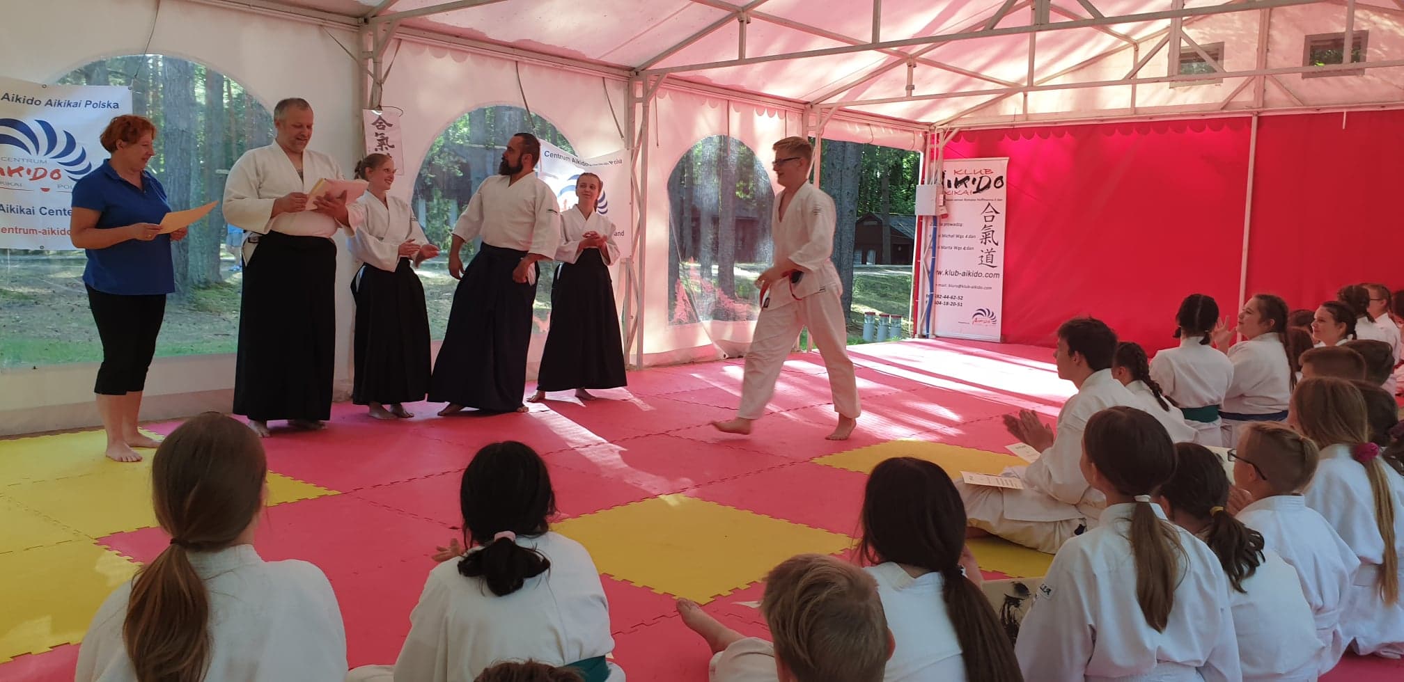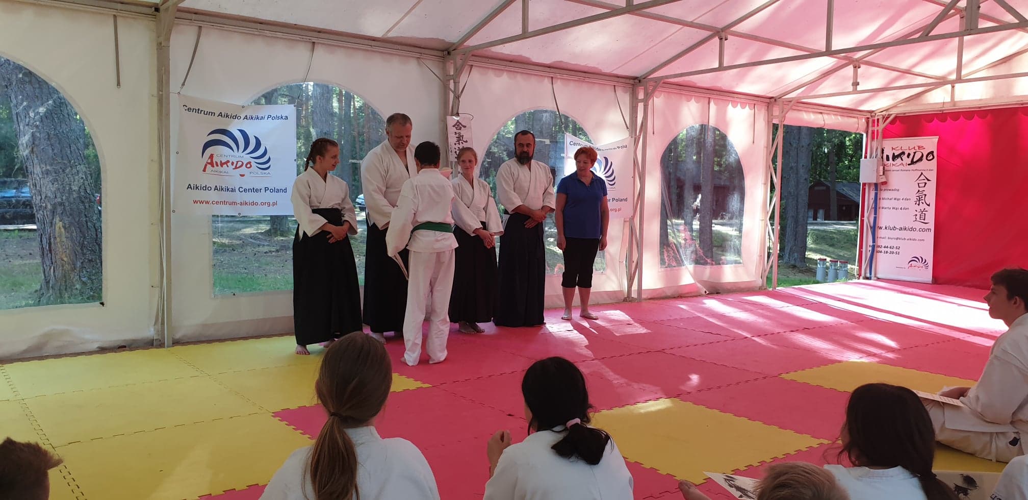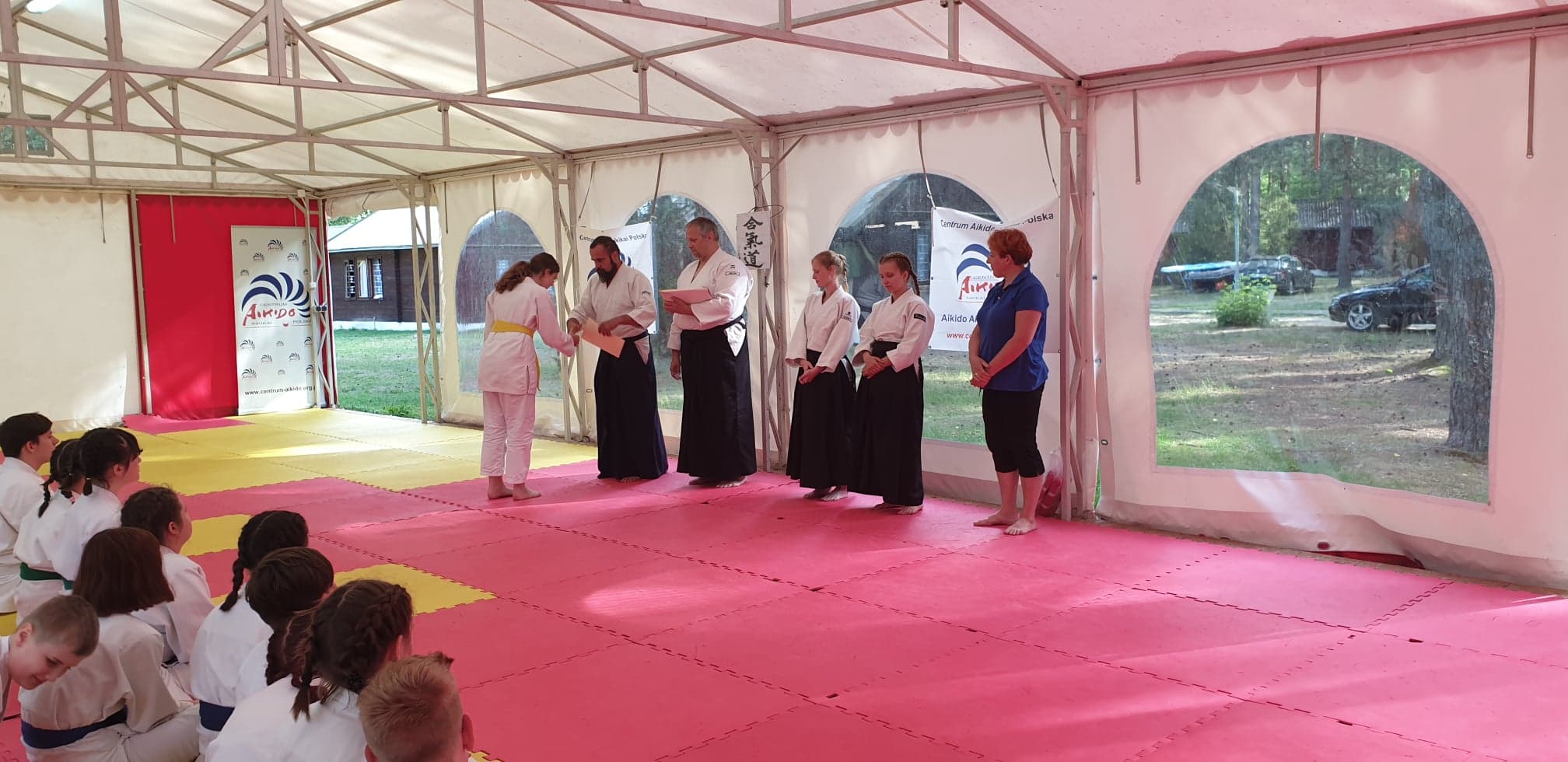 To już jest koniec… niektórzy się cieszą, inni smucą, ale nic nie zmieni faktu, że kolejna Letnia Szkoła Aikido Mazury 2020 przechodzi do historii. Zatem czas na krótkie podsumowanie: w tym roku zwyciężyły Zielone Jaszczurki. Grupa, która potrafiła ze sobą współpracować. Oczywiście konflikty były, jak to przy zderzeniu sześciu różnych charakterów, ale mimo wszystko dziewczyny potrafiły się zintegrować i nie odpuszczały do końca żadnej konkurencji. Bezapelacyjnymi zwycięzcami w konkursach sprawnościowych okazały się Żółte Ziemniaczki, panowie którzy po raz pierwszy byli na obozie. Wielki szacun! Zaskoczyli wszystkich. Naszym skromnym zdaniem, rozstanie na 3 miesiące ze szkołą, pokazało jak bardzo ważna jest umiejętność współpracy i integracji z kolegami i koleżankami, umiejętność takiego zwykłego „dogadania się” w problematycznych kwestiach i pójścia na kompromis. No cóż, pogoda nas w tym roku nie rozpieszczała – spokojnie nie padało tylko było chłodniej. Tylko raz mieliśmy okazję do kąpieli wodnej i słonecznej, ale za to zrealizowaliśmy w 100% plan treningowy, czego efekty, w postaci pokazów poszczególnych grup, będziecie mogli Państwo podziwiać na YouTube, ale w późniejszym terminie. Są to autorskie pokazy, przygotowane w całości przez młodych aikidoków, przy dyskretnym wsparciu sempaiów i senseiów (dzisiaj fotki i migawka na youtube).