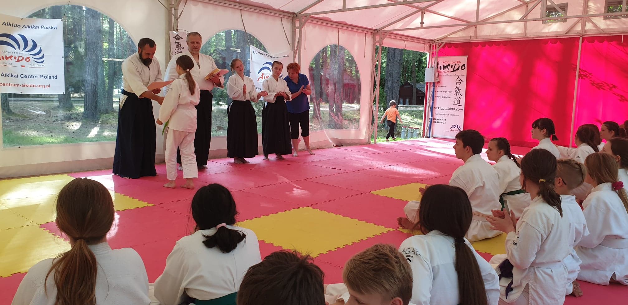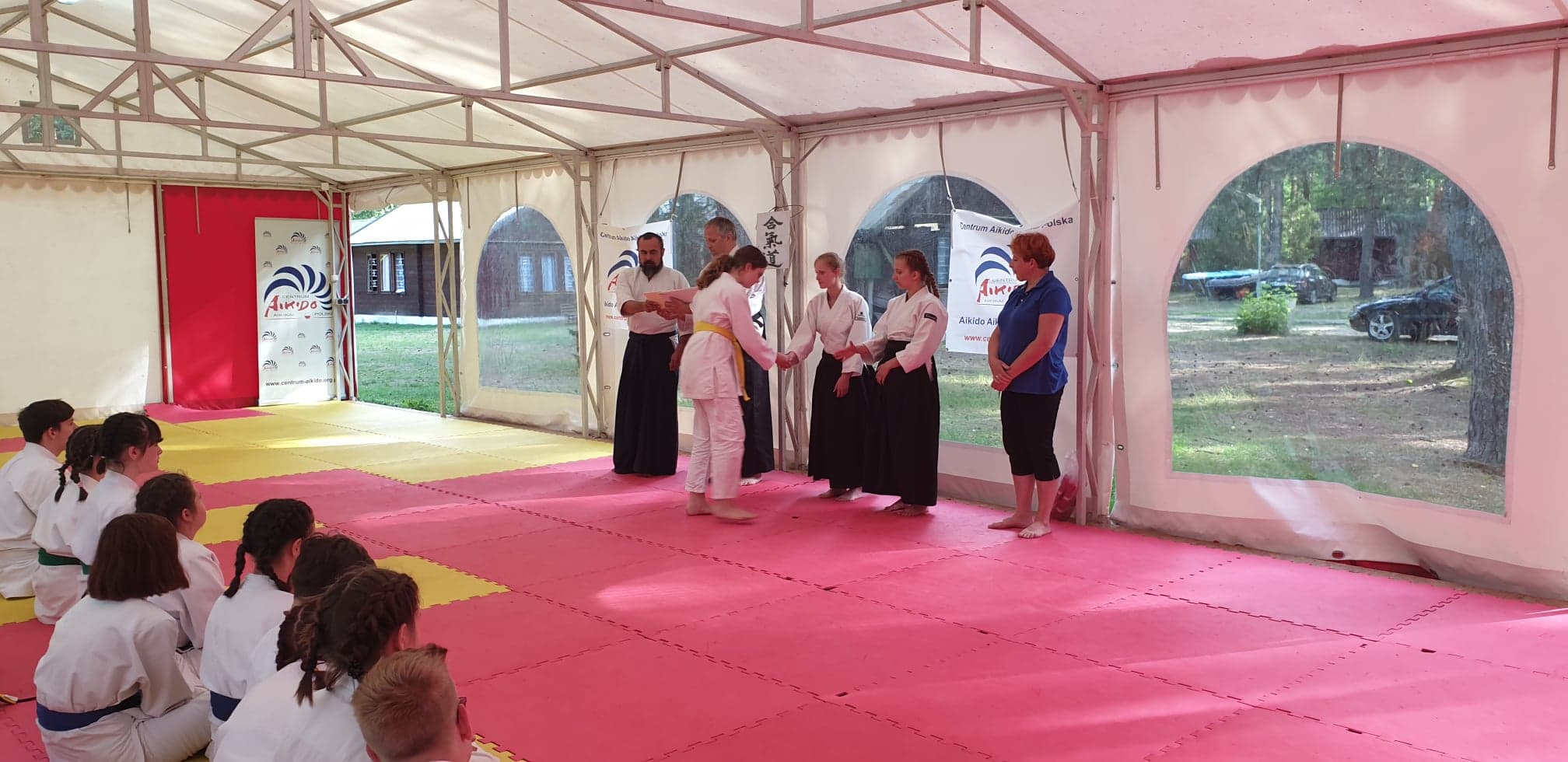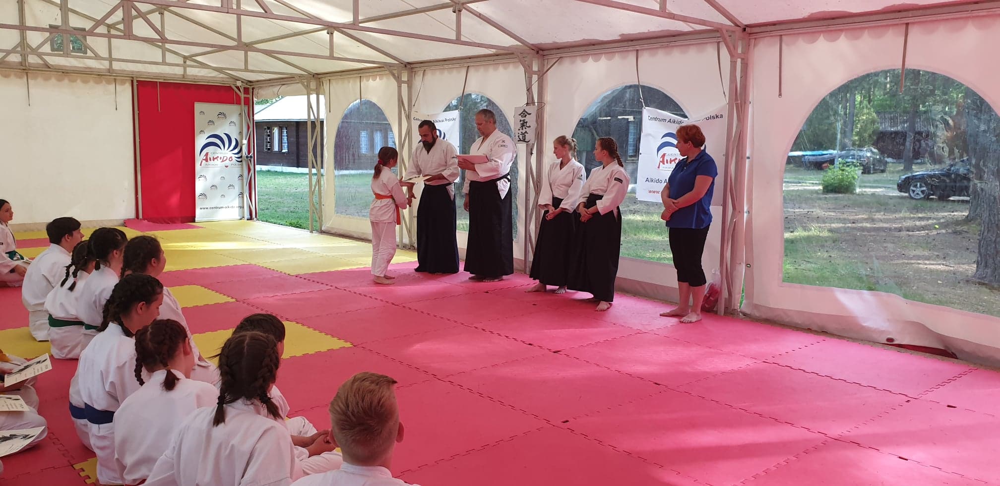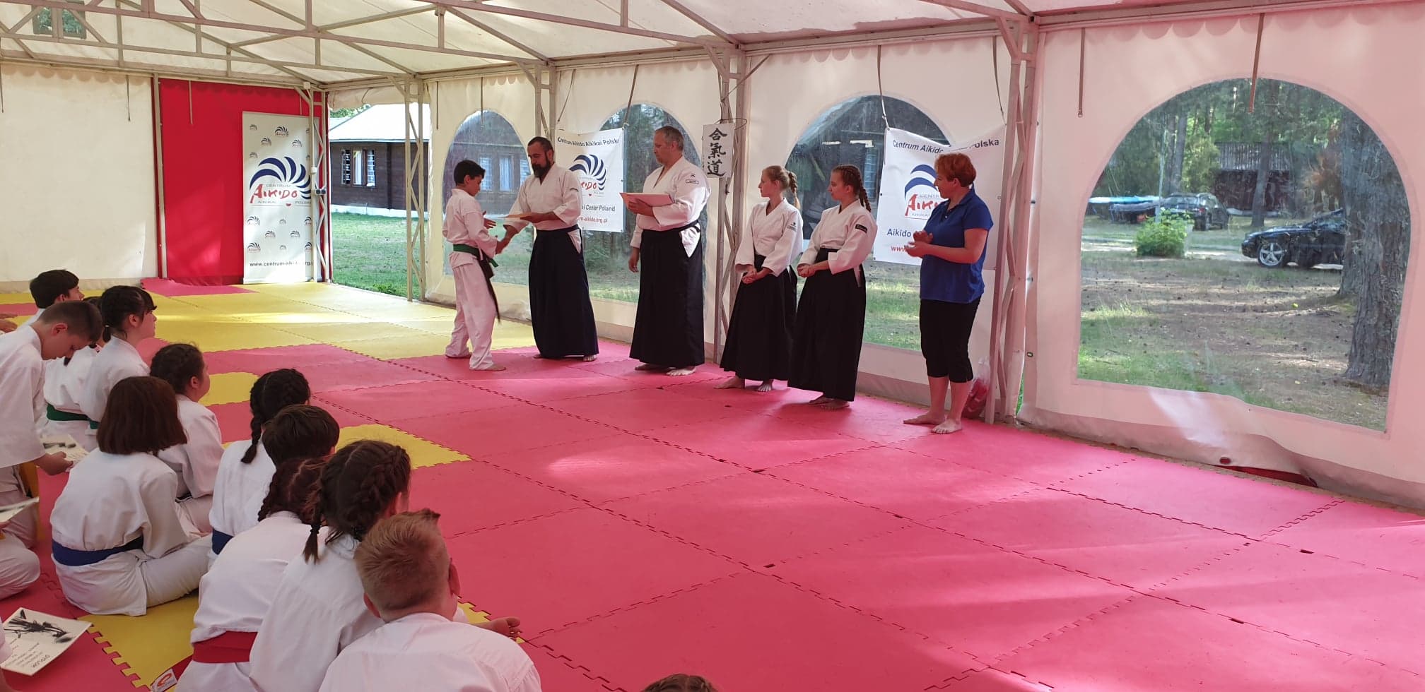 To już jest koniec… niektórzy się cieszą, inni smucą, ale nic nie zmieni faktu, że kolejna Letnia Szkoła Aikido Mazury 2020 przechodzi do historii. Zatem czas na krótkie podsumowanie: w tym roku zwyciężyły Zielone Jaszczurki. Grupa, która potrafiła ze sobą współpracować. Oczywiście konflikty były, jak to przy zderzeniu sześciu różnych charakterów, ale mimo wszystko dziewczyny potrafiły się zintegrować i nie odpuszczały do końca żadnej konkurencji. Bezapelacyjnymi zwycięzcami w konkursach sprawnościowych okazały się Żółte Ziemniaczki, panowie którzy po raz pierwszy byli na obozie. Wielki szacun! Zaskoczyli wszystkich. Naszym skromnym zdaniem, rozstanie na 3 miesiące ze szkołą, pokazało jak bardzo ważna jest umiejętność współpracy i integracji z kolegami i koleżankami, umiejętność takiego zwykłego „dogadania się” w problematycznych kwestiach i pójścia na kompromis. No cóż, pogoda nas w tym roku nie rozpieszczała – spokojnie nie padało tylko było chłodniej. Tylko raz mieliśmy okazję do kąpieli wodnej i słonecznej, ale za to zrealizowaliśmy w 100% plan treningowy, czego efekty, w postaci pokazów poszczególnych grup, będziecie mogli Państwo podziwiać na YouTube, ale w późniejszym terminie. Są to autorskie pokazy, przygotowane w całości przez młodych aikidoków, przy dyskretnym wsparciu sempaiów i senseiów (dzisiaj fotki i migawka na youtube).