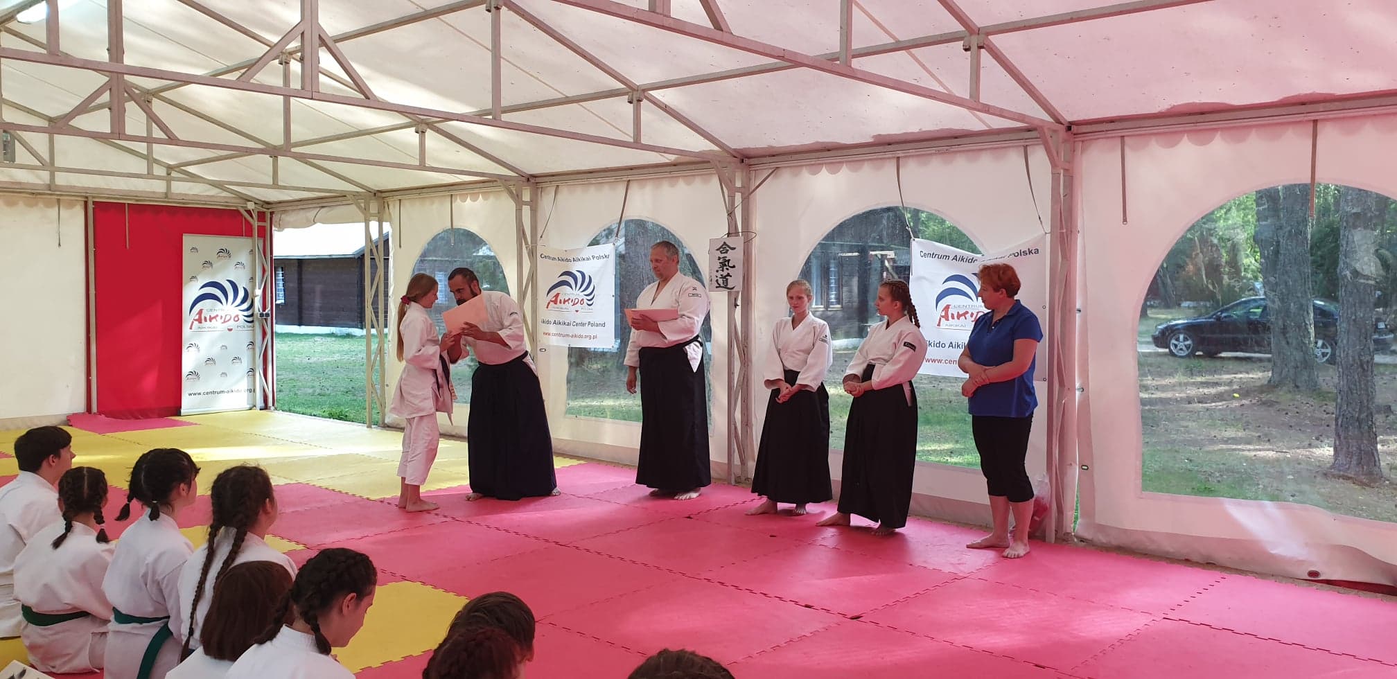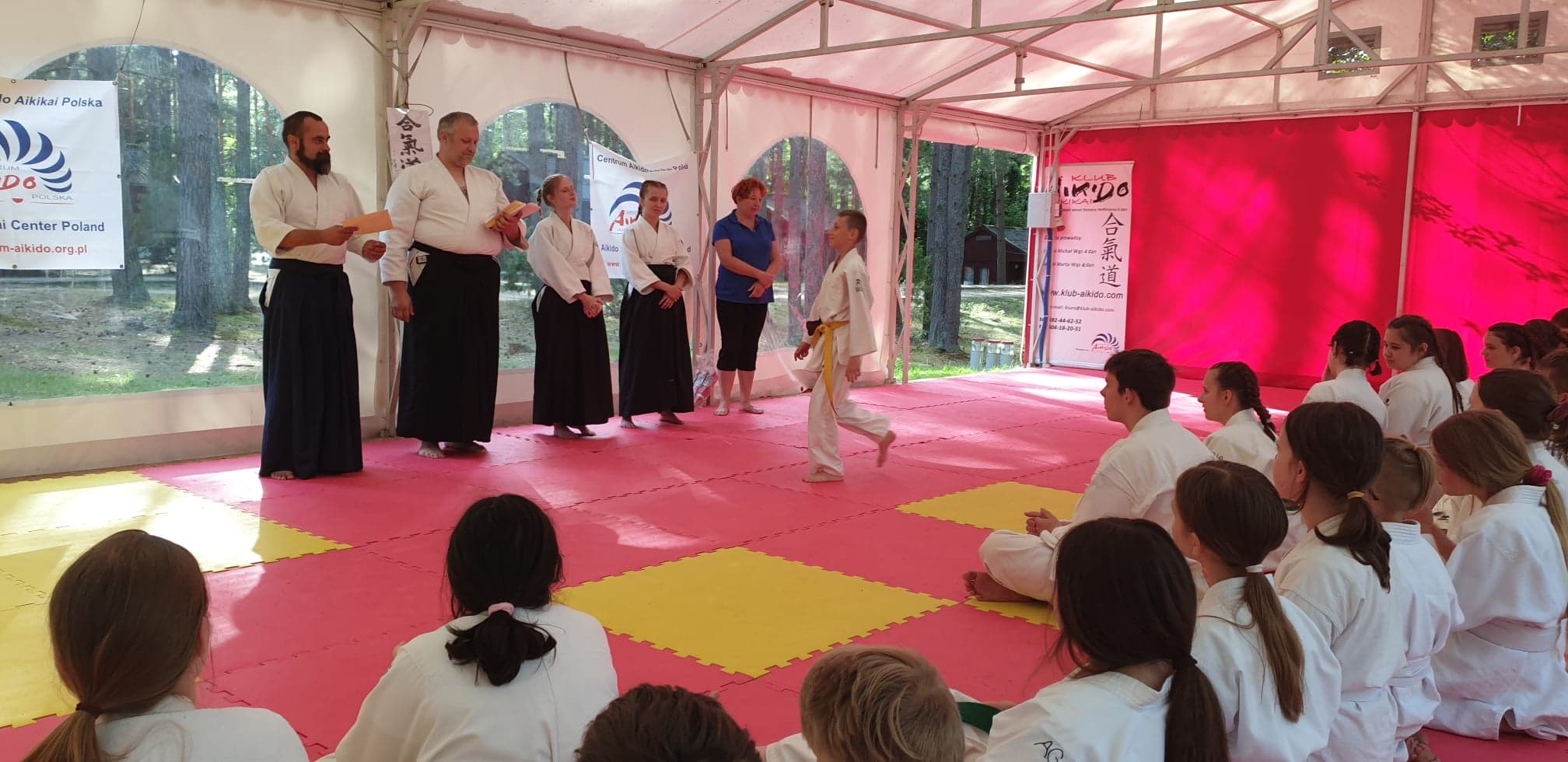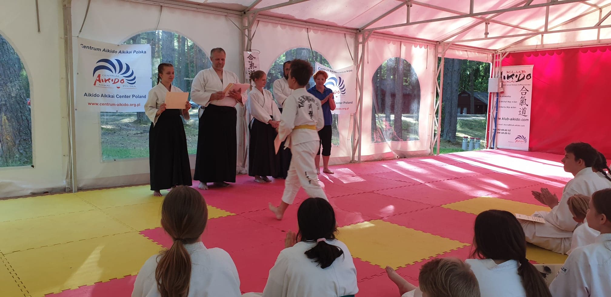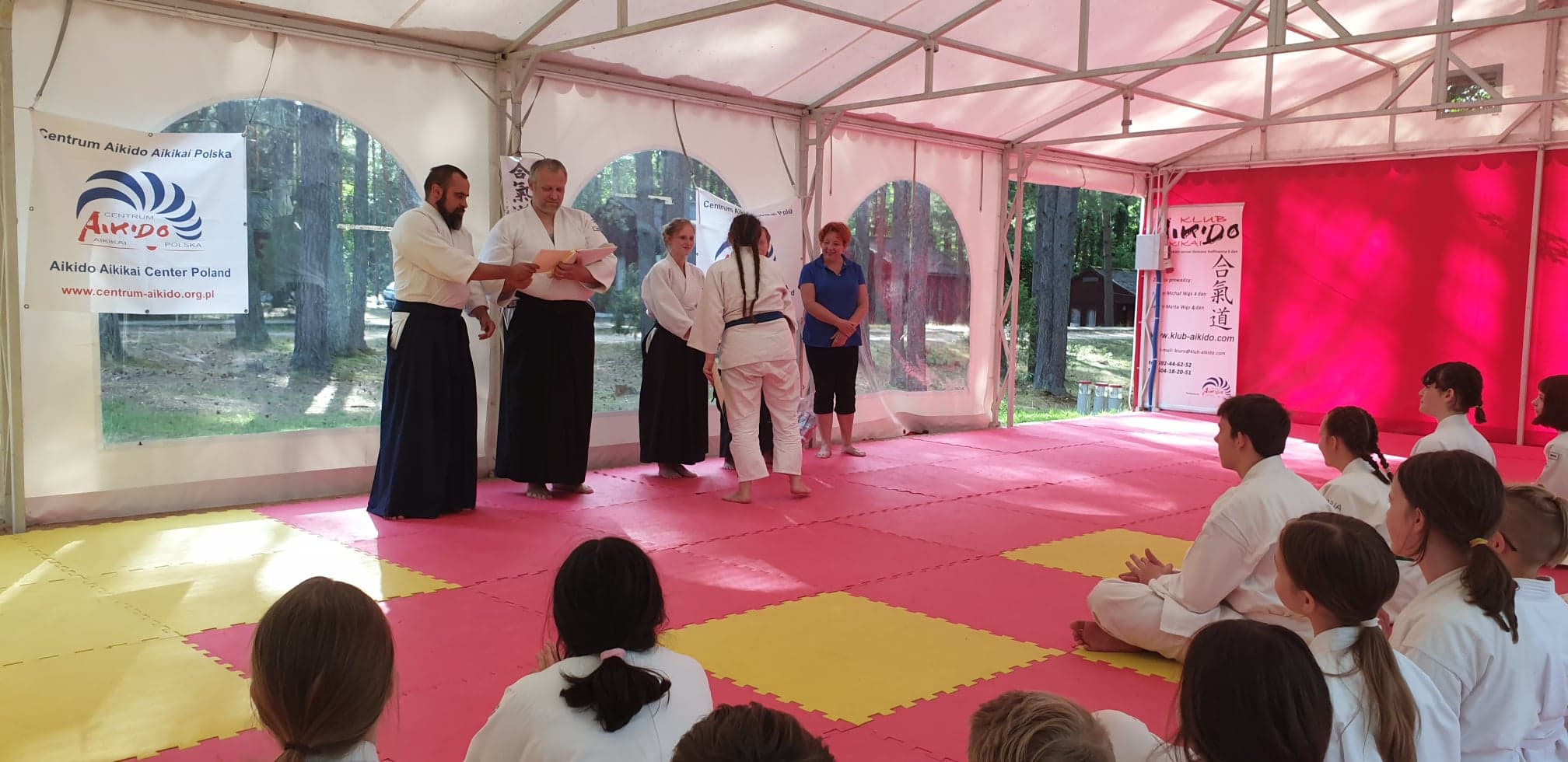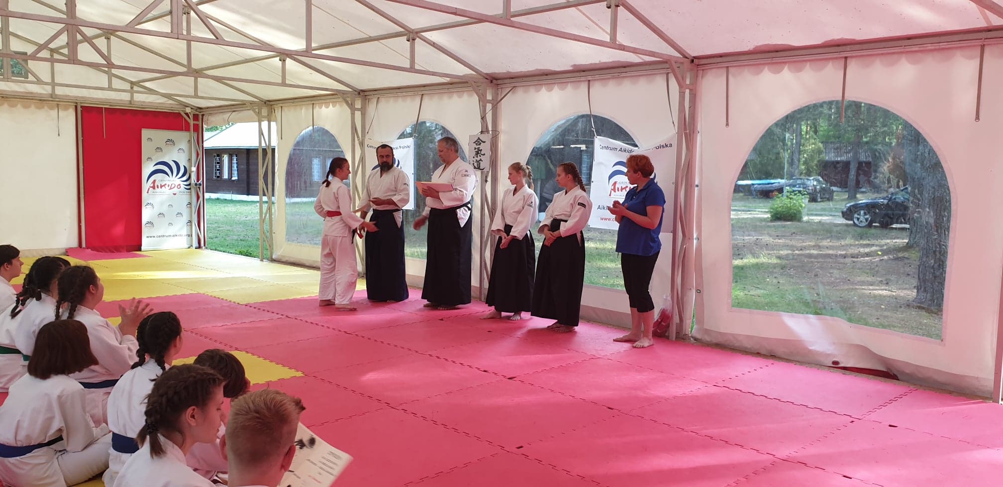 To już jest koniec… niektórzy się cieszą, inni smucą, ale nic nie zmieni faktu, że kolejna Letnia Szkoła Aikido Mazury 2020 przechodzi do historii. Zatem czas na krótkie podsumowanie: w tym roku zwyciężyły Zielone Jaszczurki. Grupa, która potrafiła ze sobą współpracować. Oczywiście konflikty były, jak to przy zderzeniu sześciu różnych charakterów, ale mimo wszystko dziewczyny potrafiły się zintegrować i nie odpuszczały do końca żadnej konkurencji. Bezapelacyjnymi zwycięzcami w konkursach sprawnościowych okazały się Żółte Ziemniaczki, panowie którzy po raz pierwszy byli na obozie. Wielki szacun! Zaskoczyli wszystkich. Naszym skromnym zdaniem, rozstanie na 3 miesiące ze szkołą, pokazało jak bardzo ważna jest umiejętność współpracy i integracji z kolegami i koleżankami, umiejętność takiego zwykłego „dogadania się” w problematycznych kwestiach i pójścia na kompromis. No cóż, pogoda nas w tym roku nie rozpieszczała – spokojnie nie padało tylko było chłodniej. Tylko raz mieliśmy okazję do kąpieli wodnej i słonecznej, ale za to zrealizowaliśmy w 100% plan treningowy, czego efekty, w postaci pokazów poszczególnych grup, będziecie mogli Państwo podziwiać na YouTube, ale w późniejszym terminie. Są to autorskie pokazy, przygotowane w całości przez młodych aikidoków, przy dyskretnym wsparciu sempaiów i senseiów (dzisiaj fotki i migawka na youtube).
